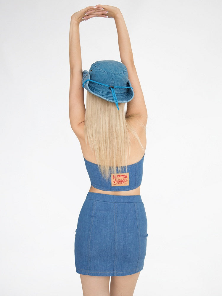 Dieses rückenfreie, glamouröse Cheongsam-Oberteil in Jeansblau mit abgerundetem Saum ist die perfekte Mischung aus traditionellem und modernem Stil. Das einzigartige rückenfreie Design verleiht den eleganten Cheongsam-Ärmeln einen koketten Touch. Hergestellt aus hochwertigem Denim ist dieses Oberteil bequem und stilvoll zugleich. Perfekt für einen lustigen Abend oder einen besonderen Anlass.