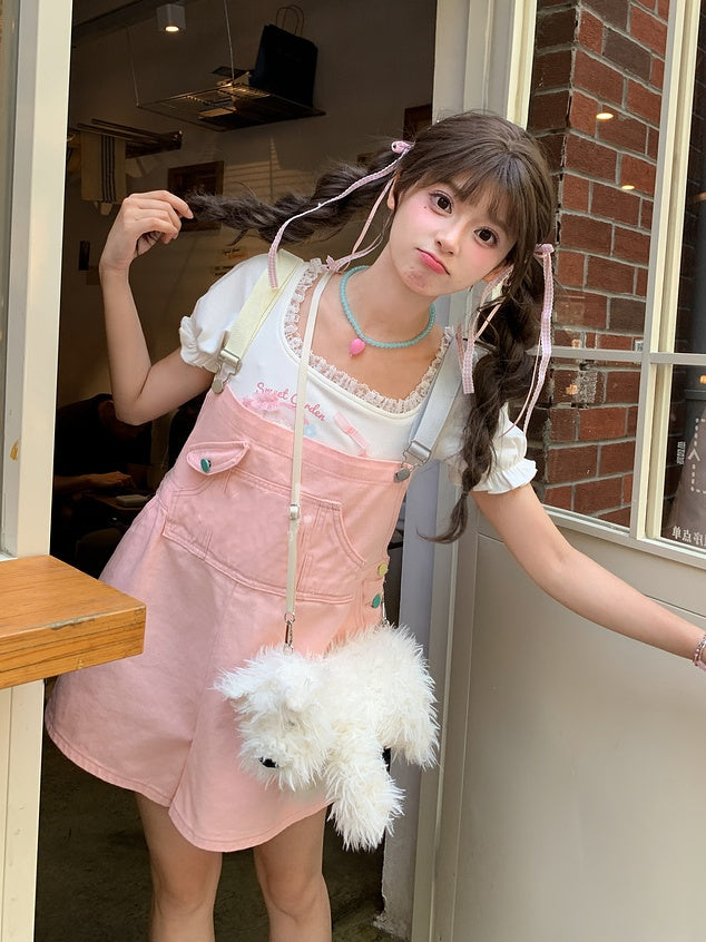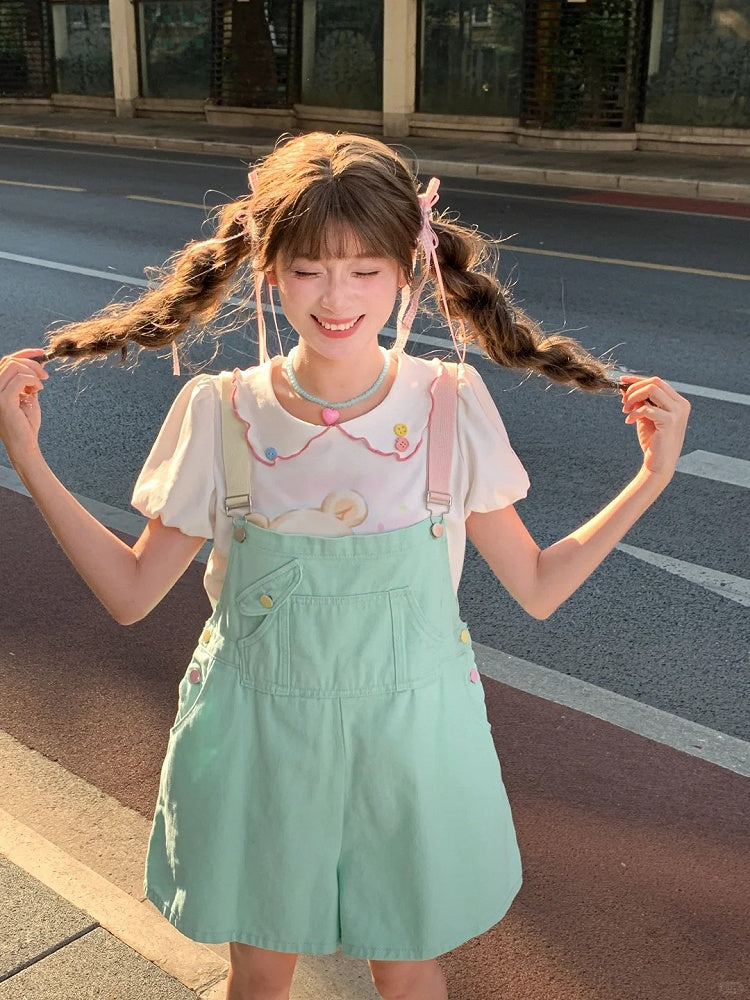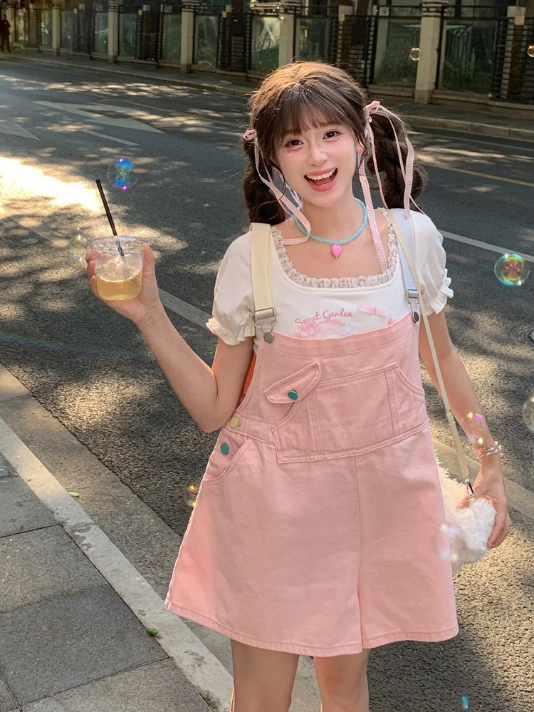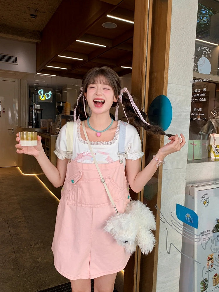 Candy Color Pink/Mintgrüne Jeans-Overall-Shorts