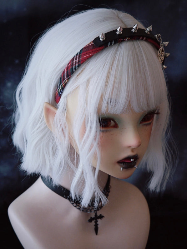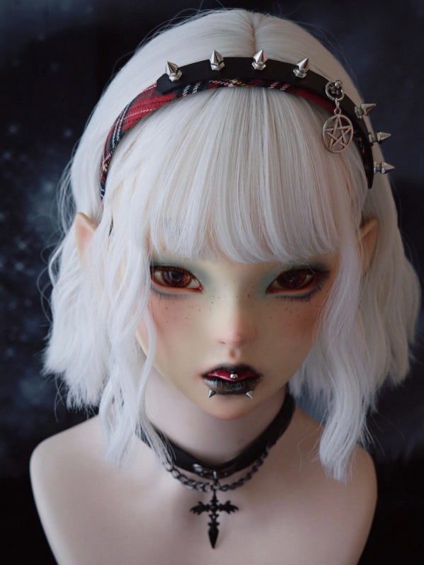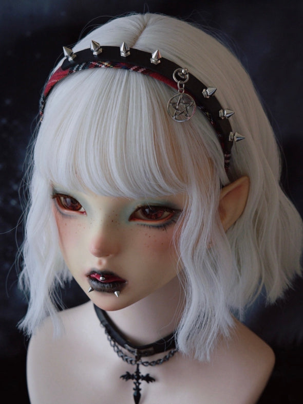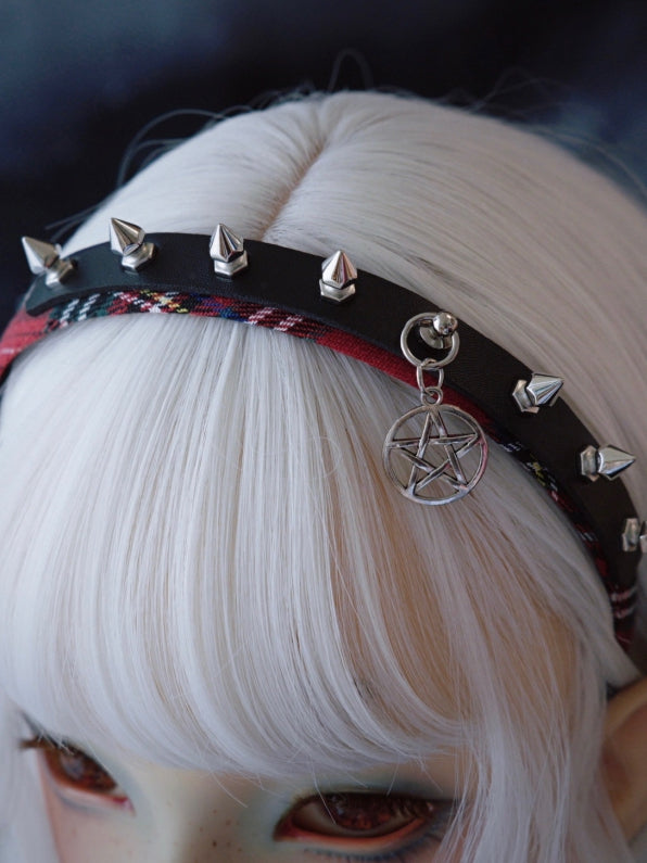 Schwarz-rotes Karomuster mit Nieten und Pentagramm-Charm-Design KC