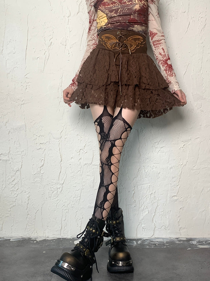 Design Strapsstrümpfe Details Schwarz/Weiß/Rosa/Rot/Grau Cut-out Netz