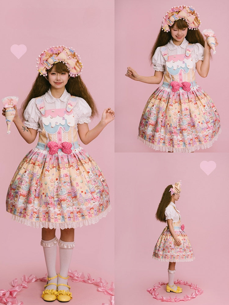 Desserts Gummibärchen Kleid Print und Overall Bär Gelb Lolita
