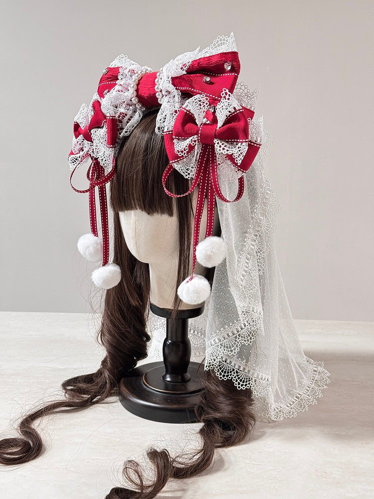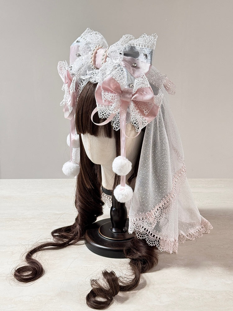 (Detachable Veil Multi-Color KC Lolita Set Bows) Head with Hairclip Lace