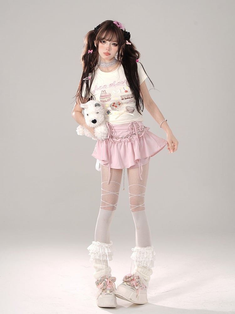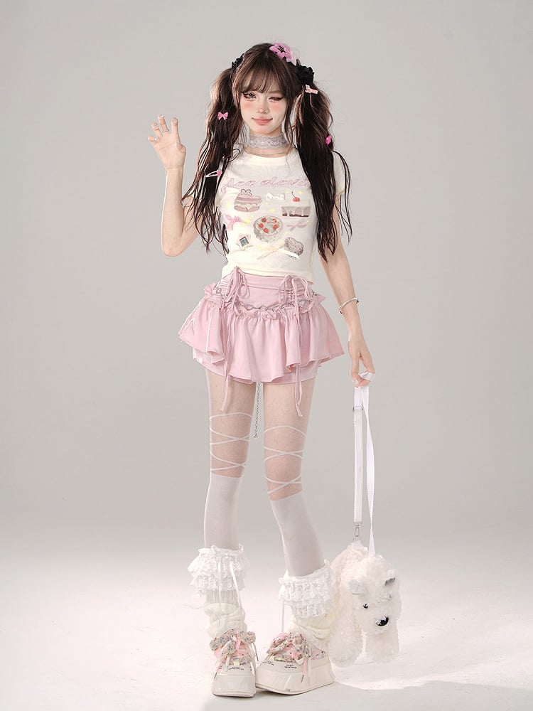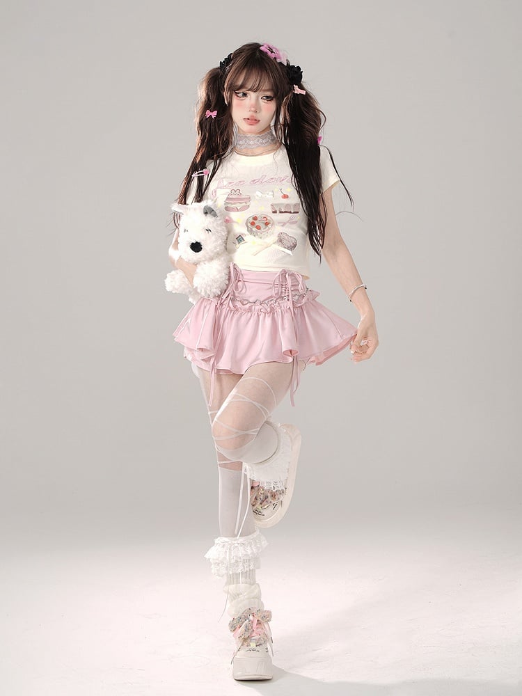 Apricot Sweet Treats – Tailliertes T-Shirt mit Grafik und Schleifendetails