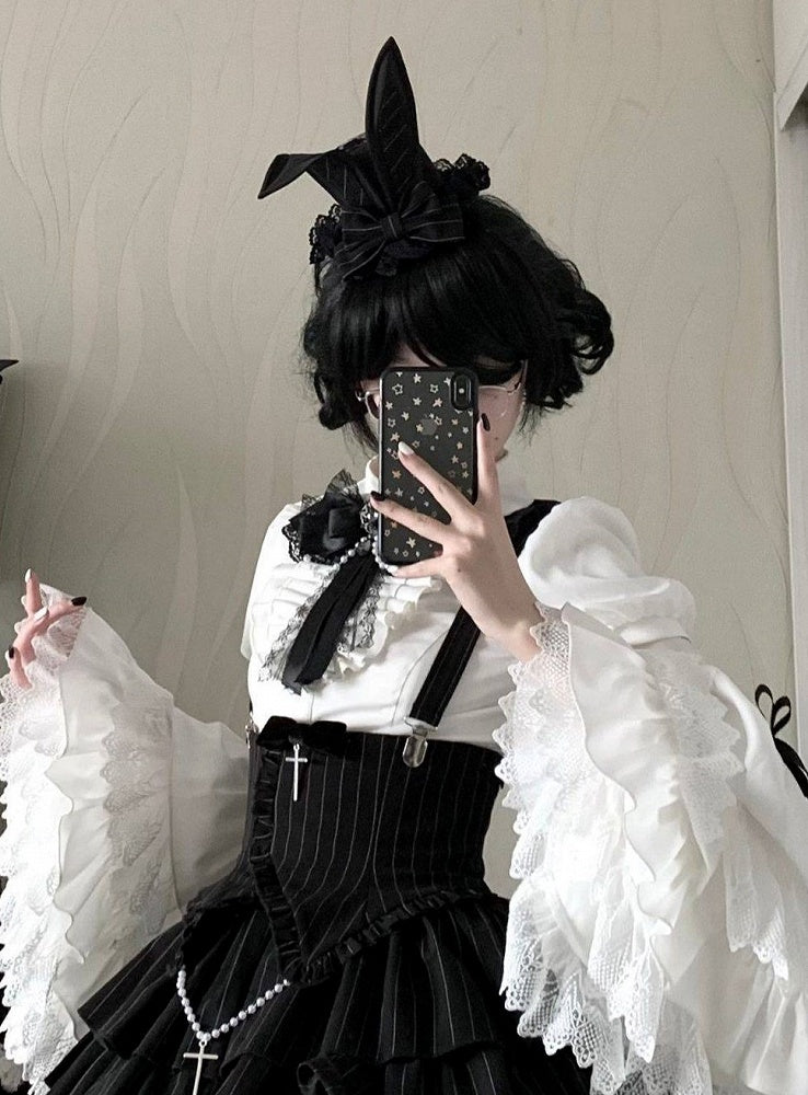 Details with Hat Design Mini Ear and Lace Bunny Lolita Bow Black