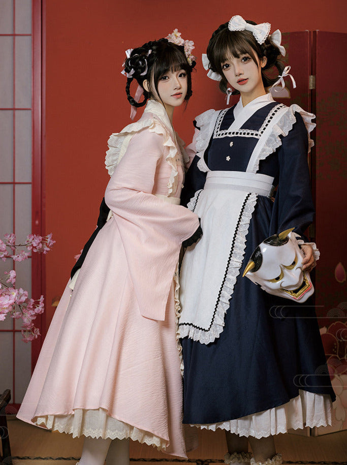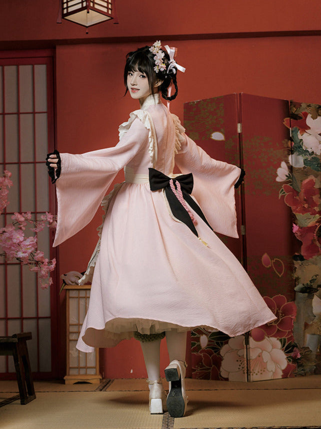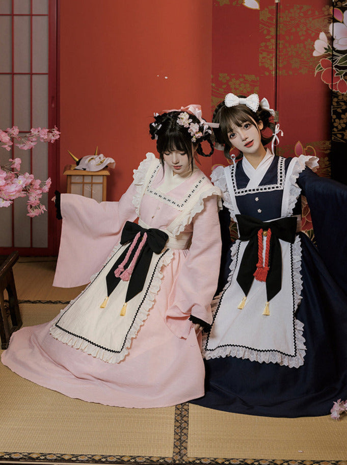 Dieses Maid Retro-Kleid besticht durch eine bezaubernde Schleife und große Rüschenakzente und verleiht jedem Outfit einen Hauch von Niedlichkeit. Perfekt für einen Vintage-Look mit modernem Touch.