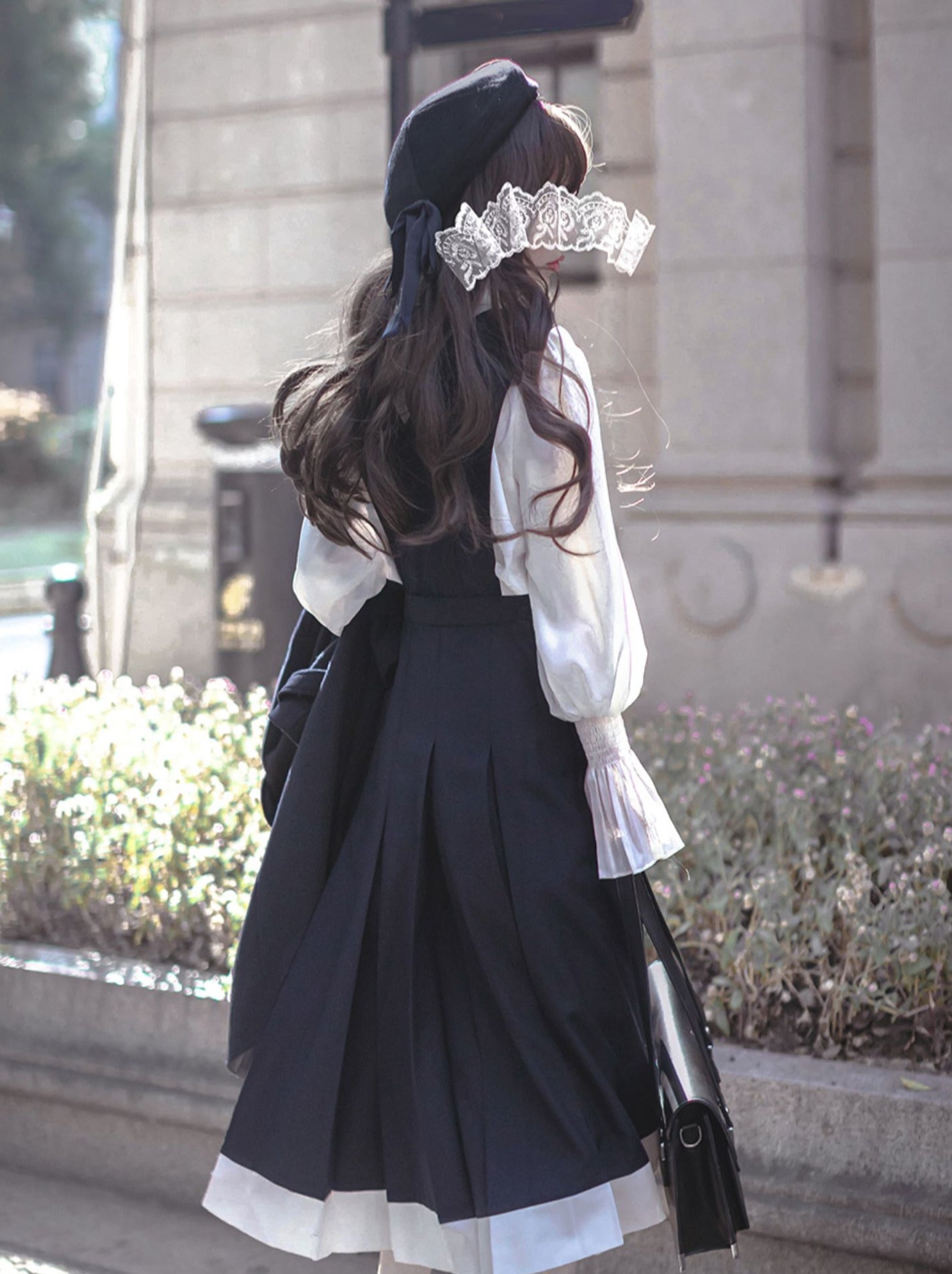 Schwarz-weißes Old School Lolita Fashion Kleid Bowknot Lolita JSK Set