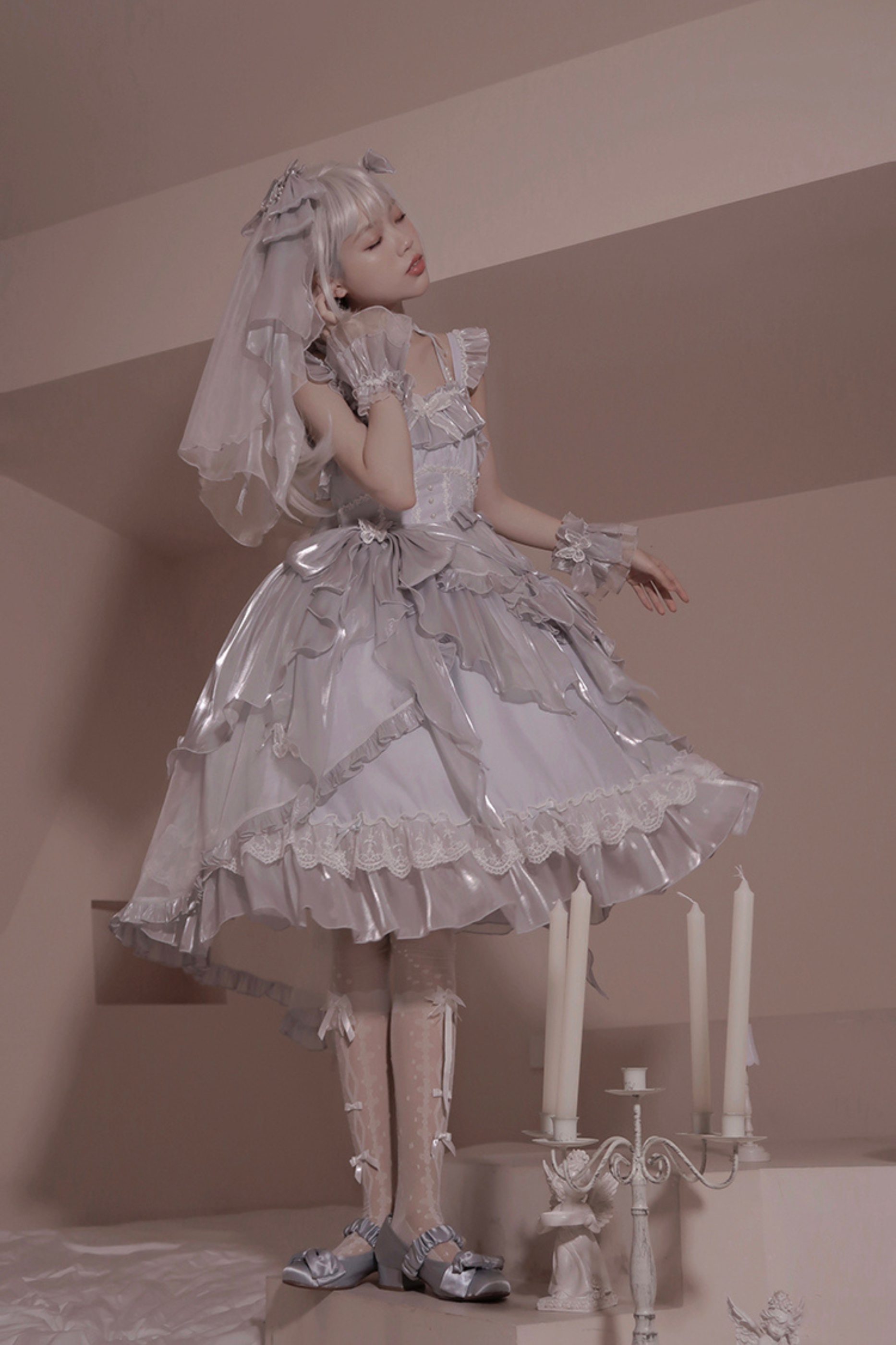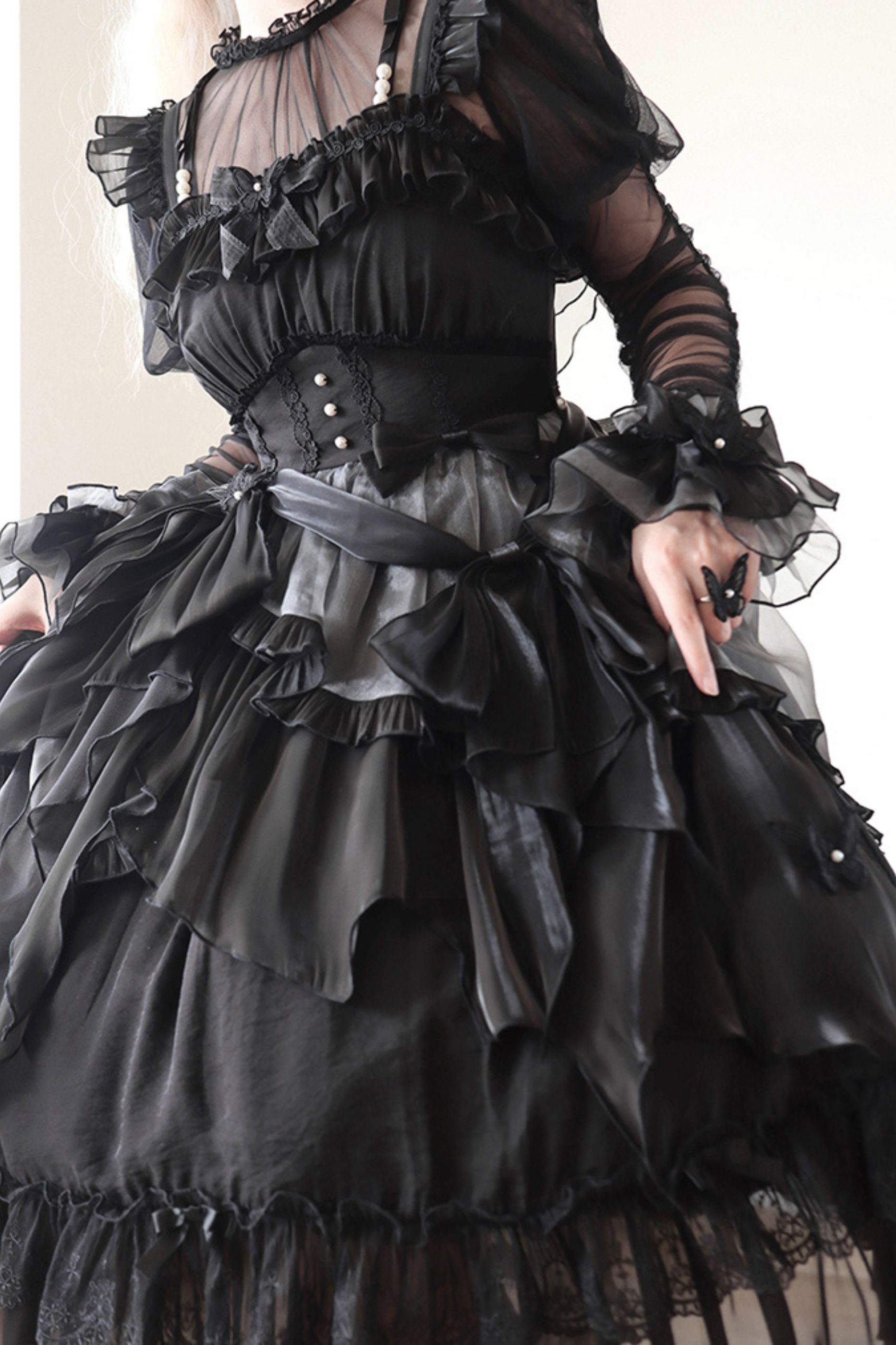 Schwarz-weißes Old School Lolita Fashion Kleid Bowknot Lolita JSK Set