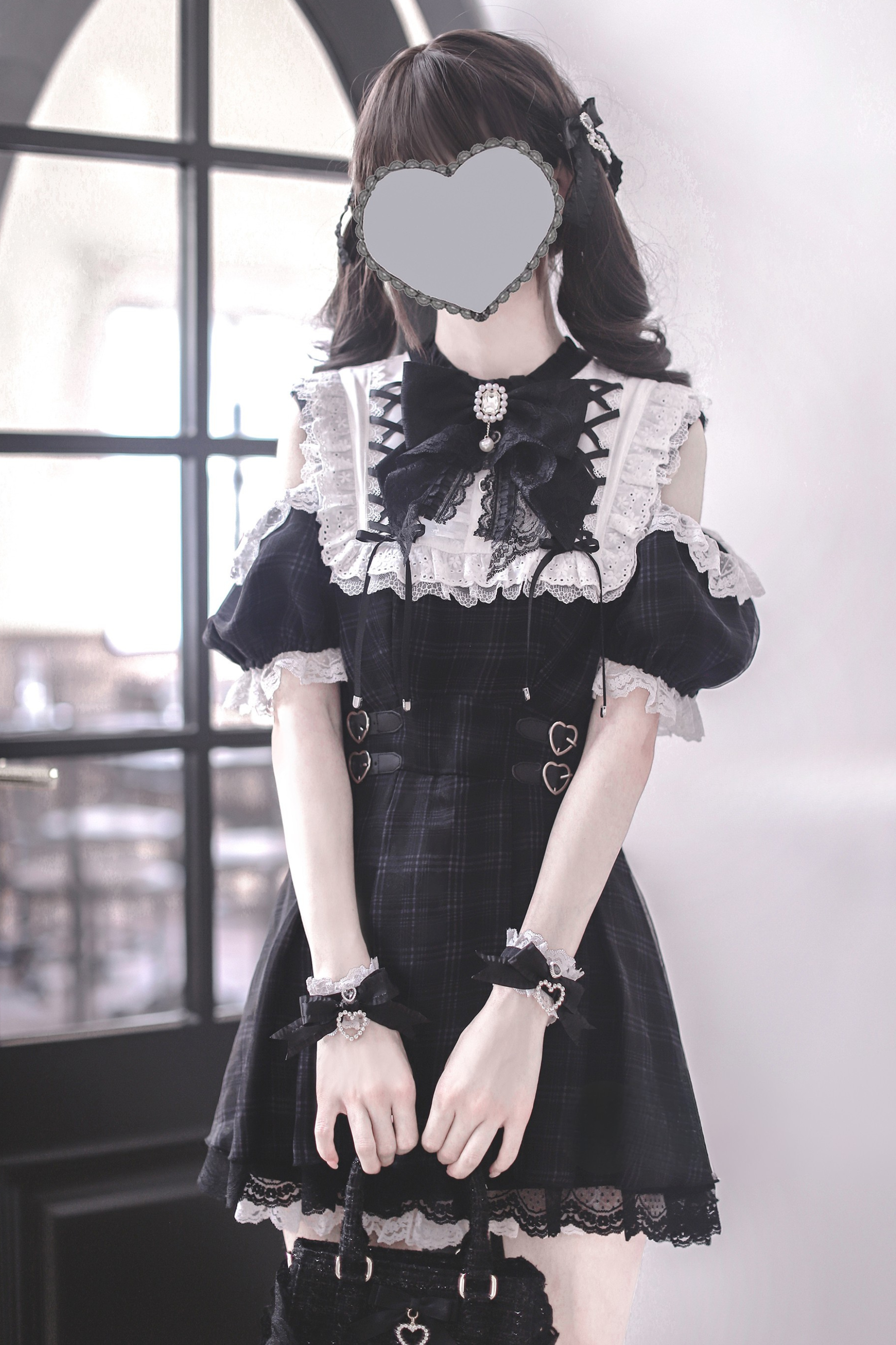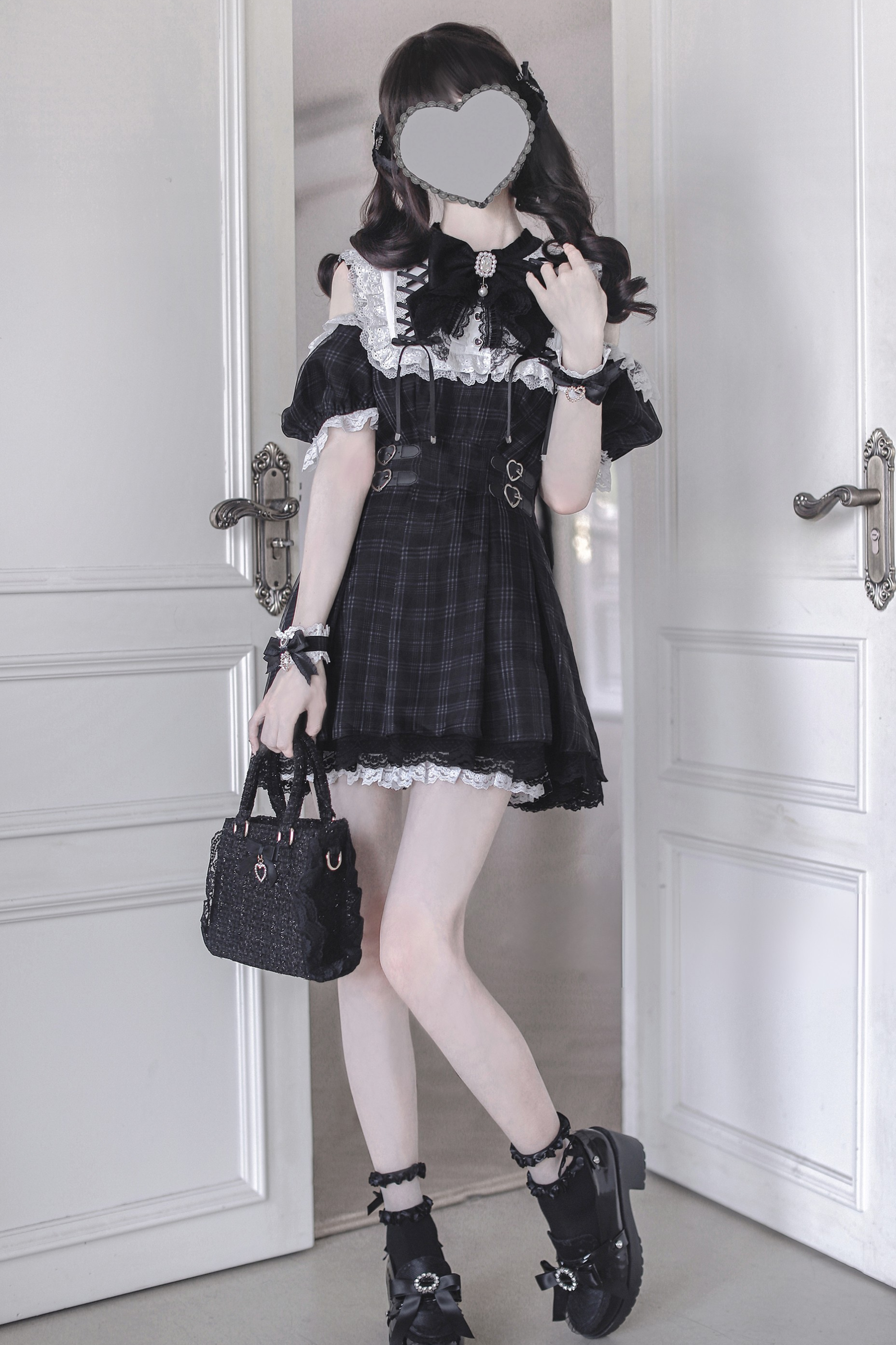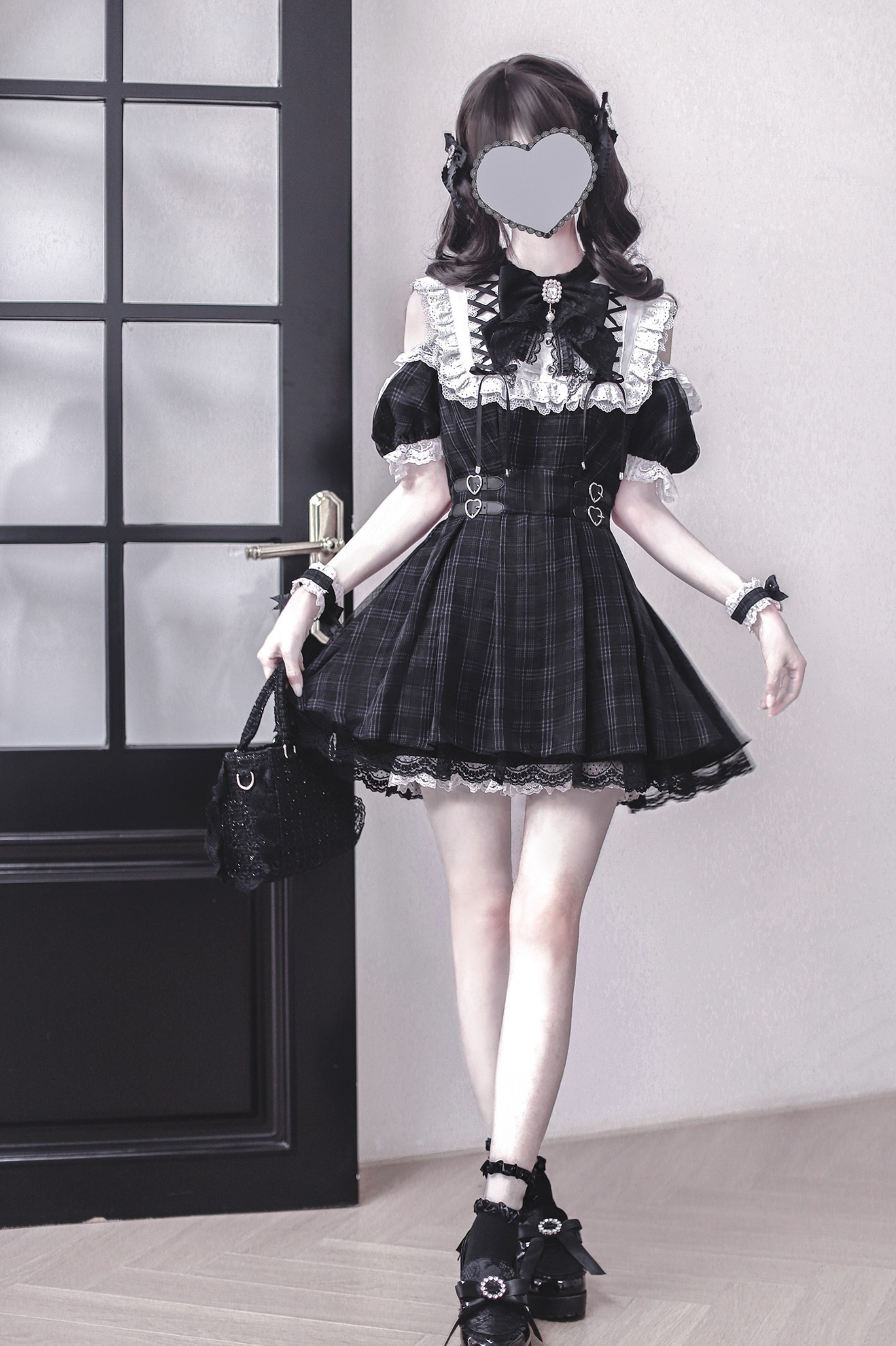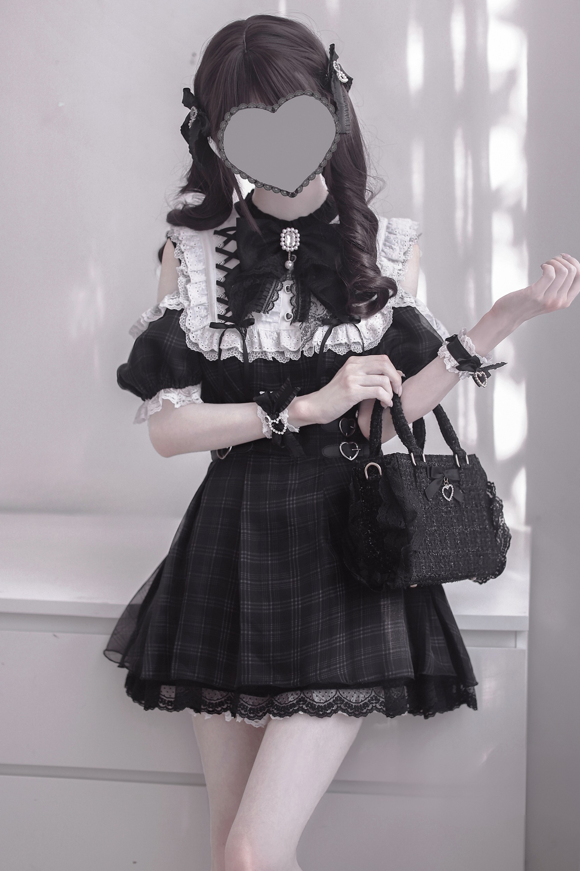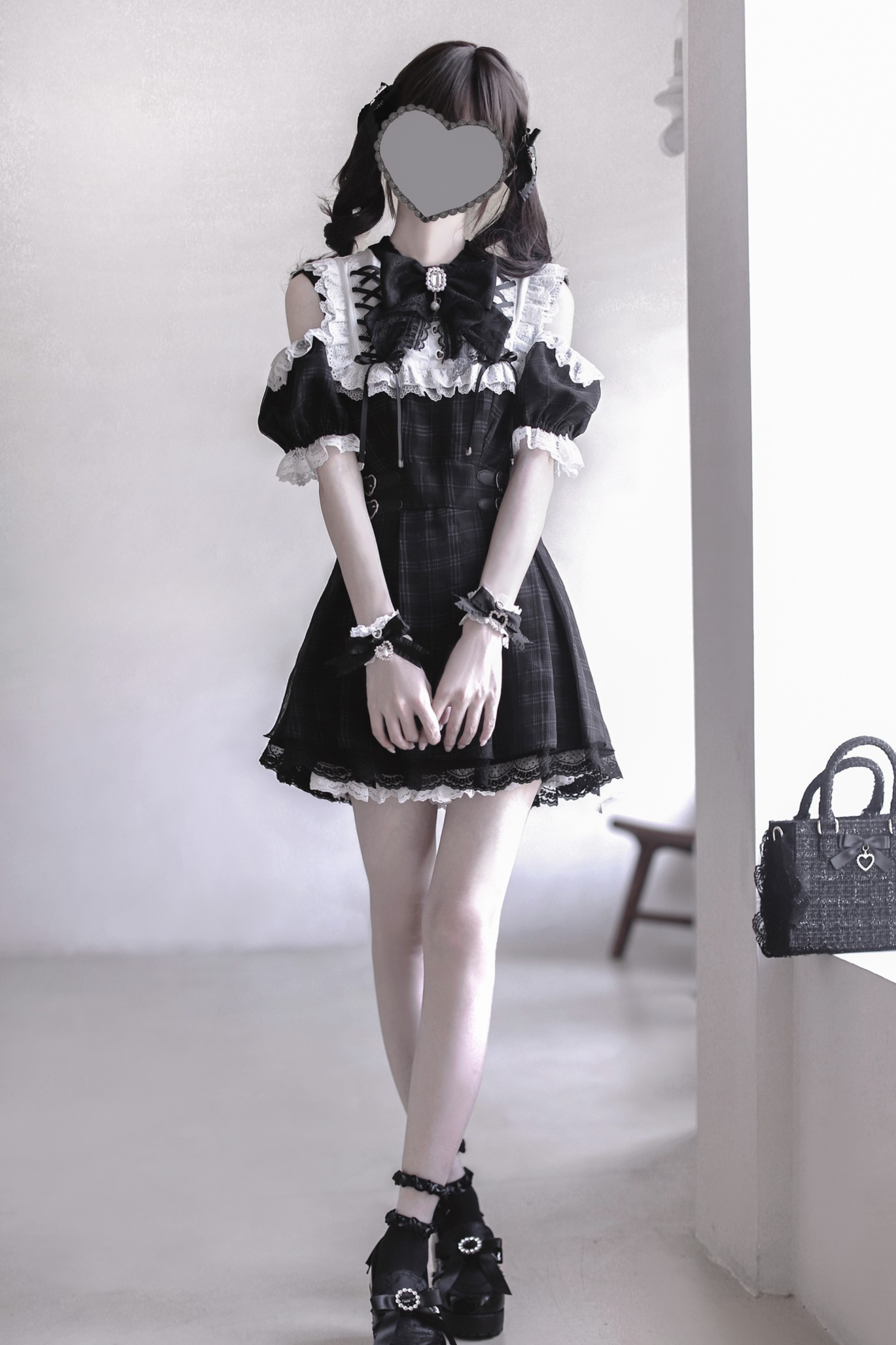 Schwarz-weißes Old School Lolita Fashion Kleid Bowknot Lolita JSK Set