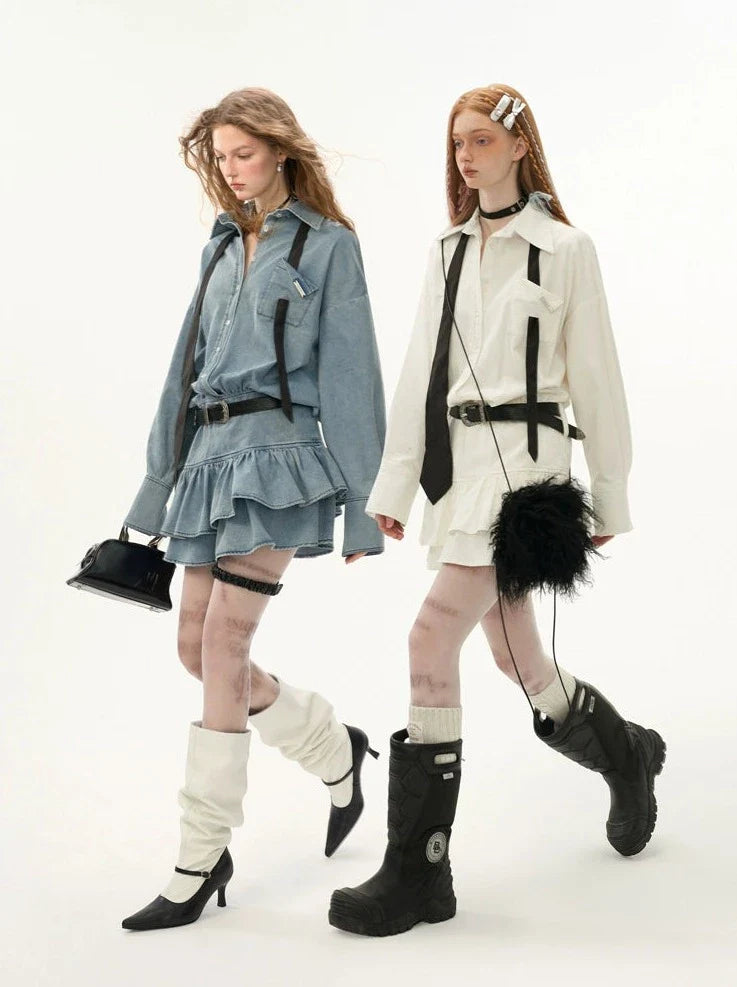 Blau-weißes Old School Lolita Fashion Kleid mit Schleife und Details, JSK-Set