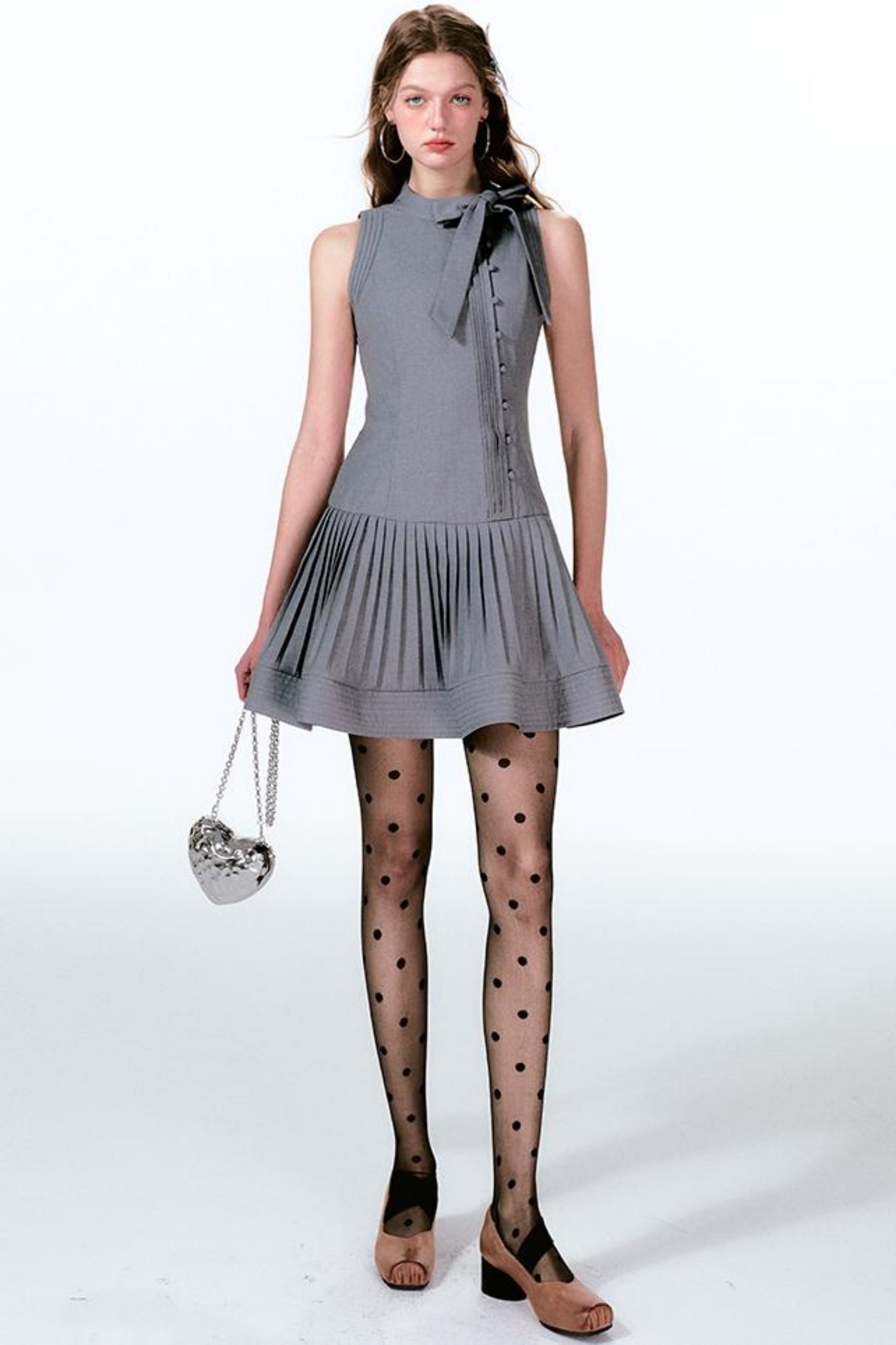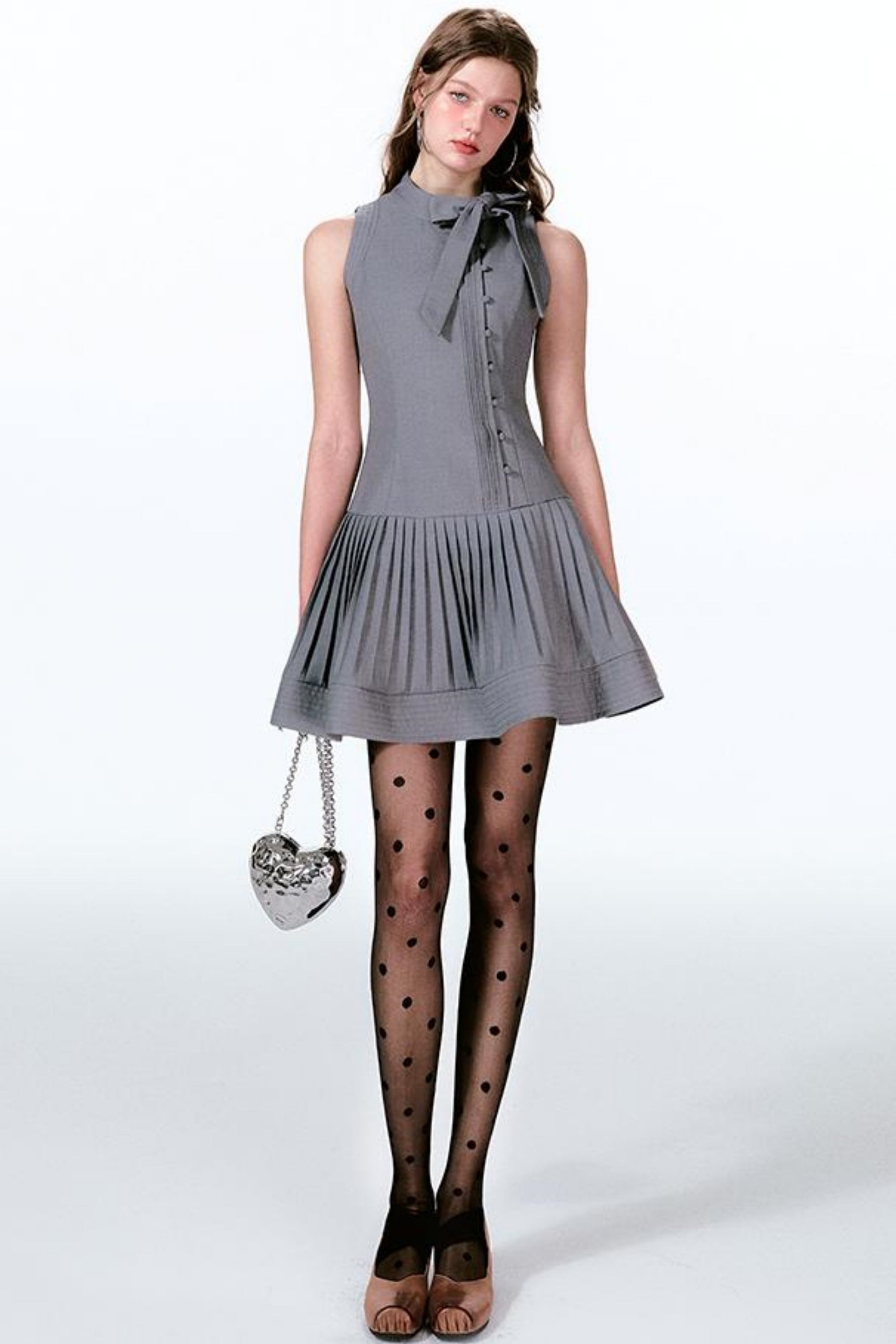 ❤Ärmelloses Kleid mit plissiertem French Coolred Ribbon❤