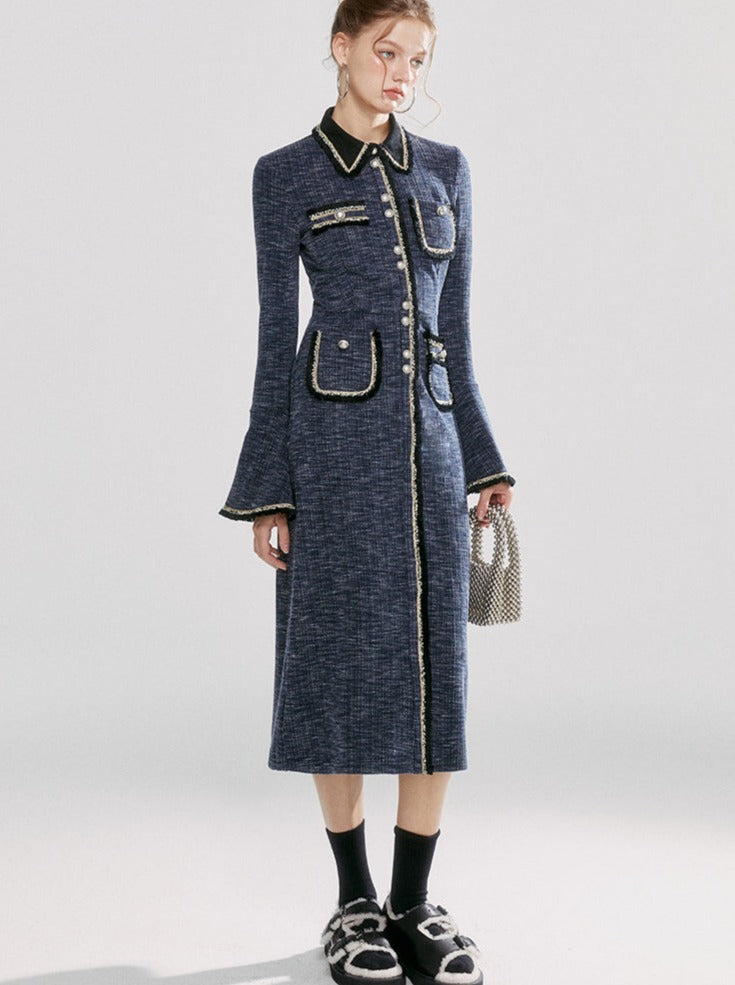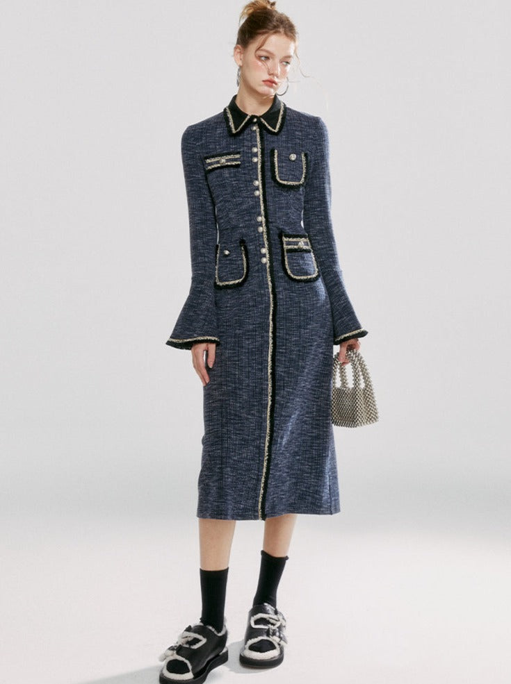 Genießen Sie einen Hauch von Eleganz mit diesem schmalen Retro-Kleid. Perfekt für jeden Anlass, sein zeitloses Design lässt Sie stilvoll hervorstechen. Ein Must-have für jede trendige Garderobe.