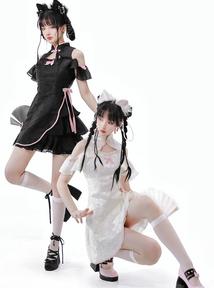 Schwarz-weißes Old School Lolita Fashion Kleid Bowknot Lolita JSK Set