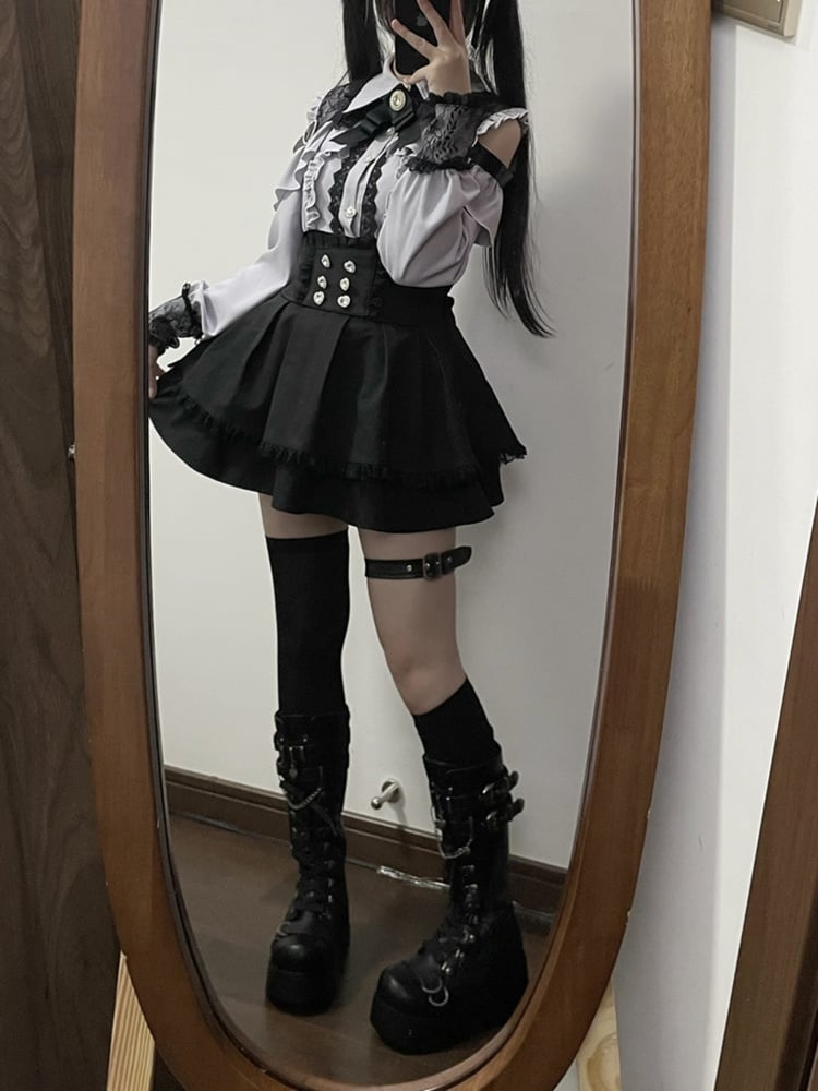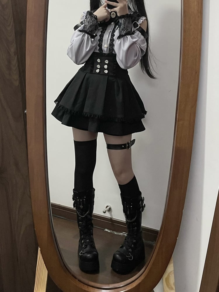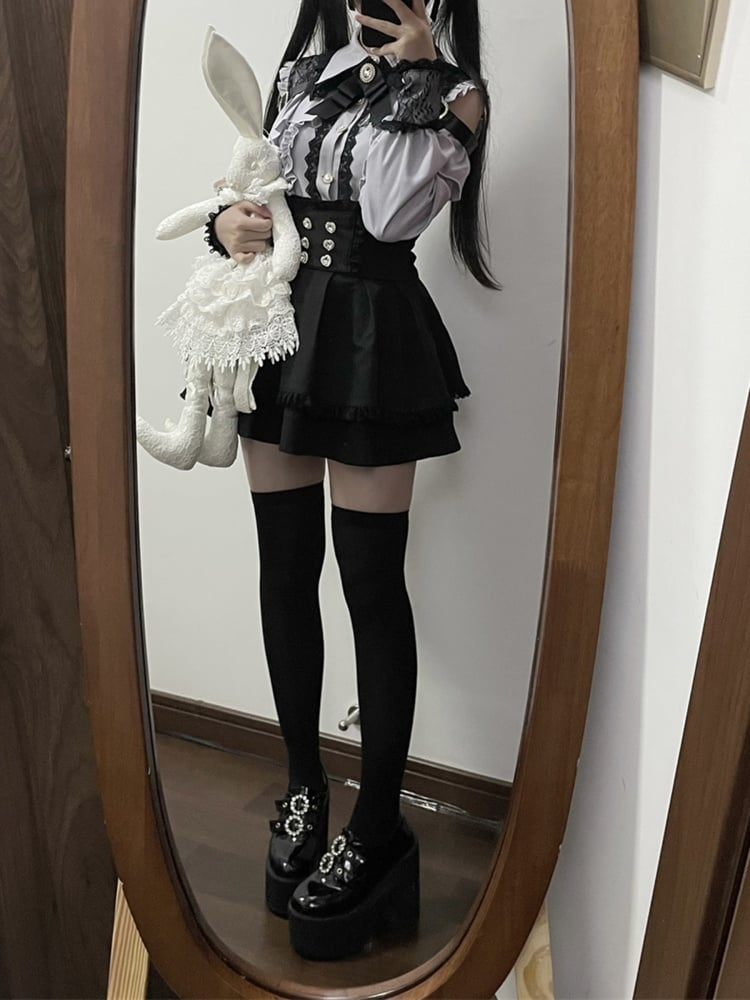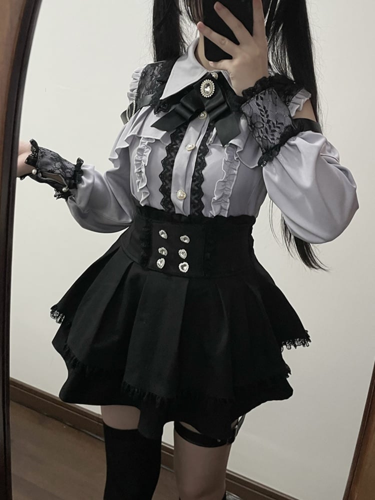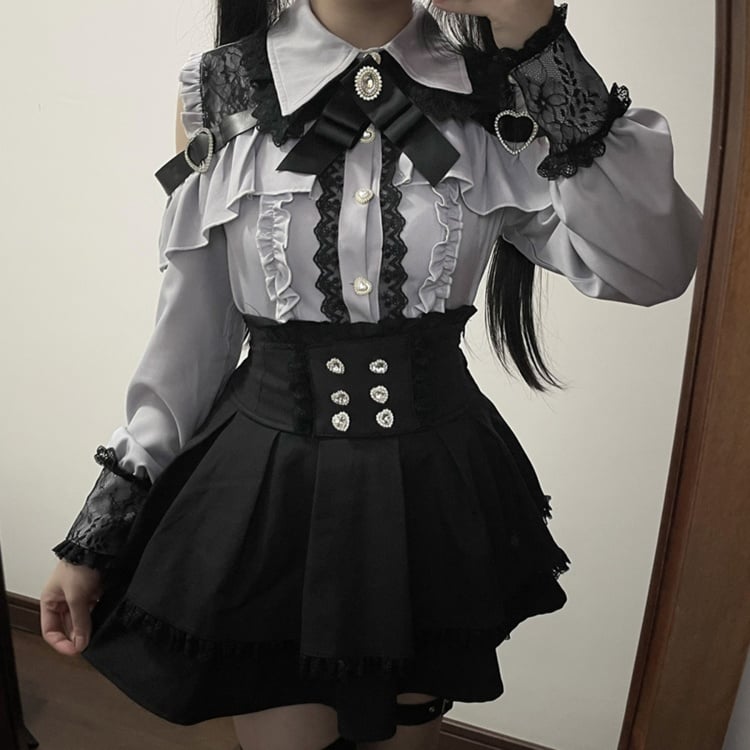 Verleihen Sie Ihrem Look mit unserem staubblauen Jirai Kei Top mit Herzausschnitt und Knopfverschluss einen Hauch von Charme. Mit der kostenlosen Fliege ist dieses Top perfekt für alle, die mit lässigem Stil auffallen möchten. Der Herzausschnitt und der Knopfverschluss verleihen diesem Must-have eine einzigartige Note.