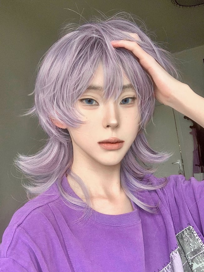 Verleihen Sie Ihrem Look einen Hauch von Niedlichkeit mit unserer staubig-lila Ouji-Perücke mit Pony. Die sanfte lila Farbe und der stylische Pony verleihen Ihnen ein bezauberndes Aussehen. Passt perfekt zu jedem süßen und verspielten Outfit.