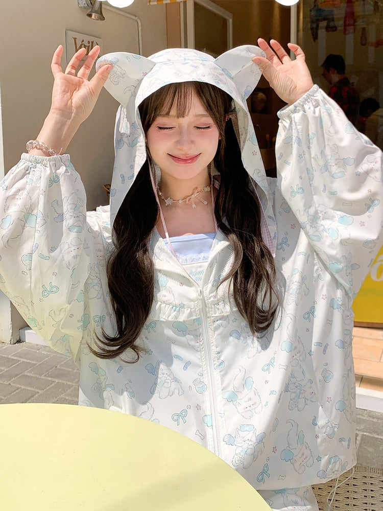 Ohren Kapuze Design Kitty Print Kitty Sonnenschutz Jacke Weiß Entzückend