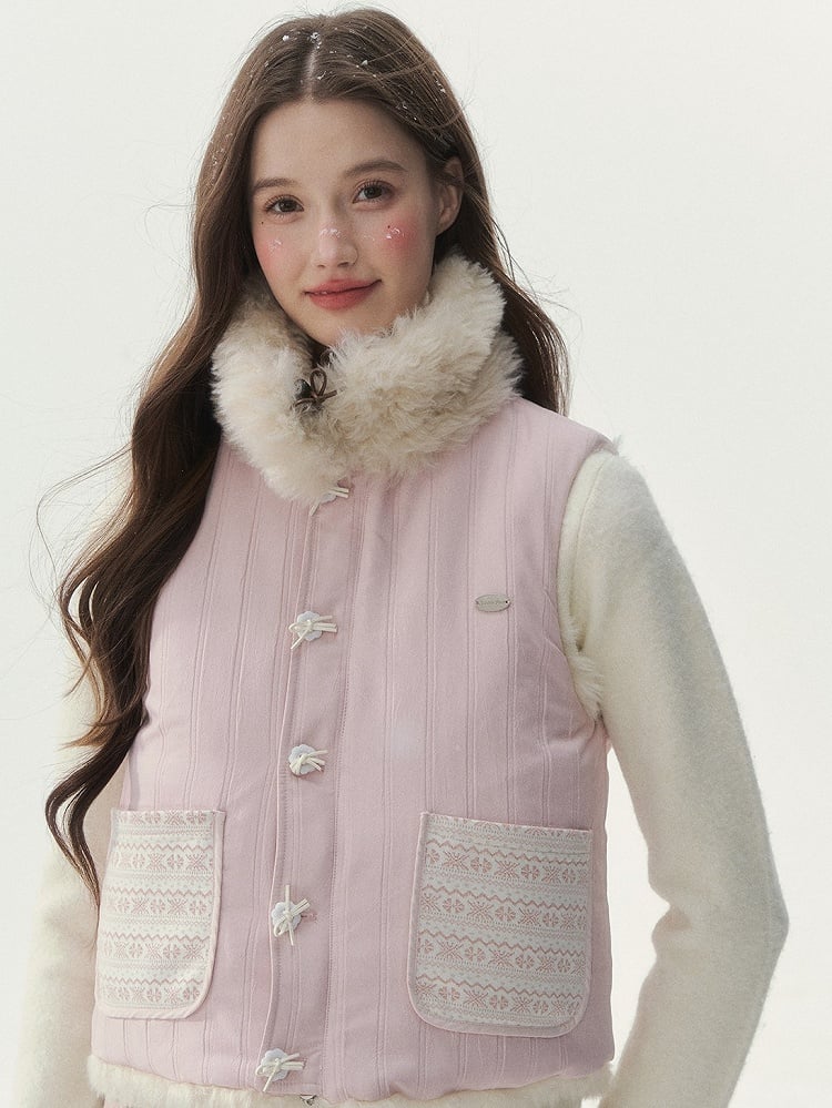 Sweet Pink Double-Sided Vintage Vest with Eco-Friendly Fur