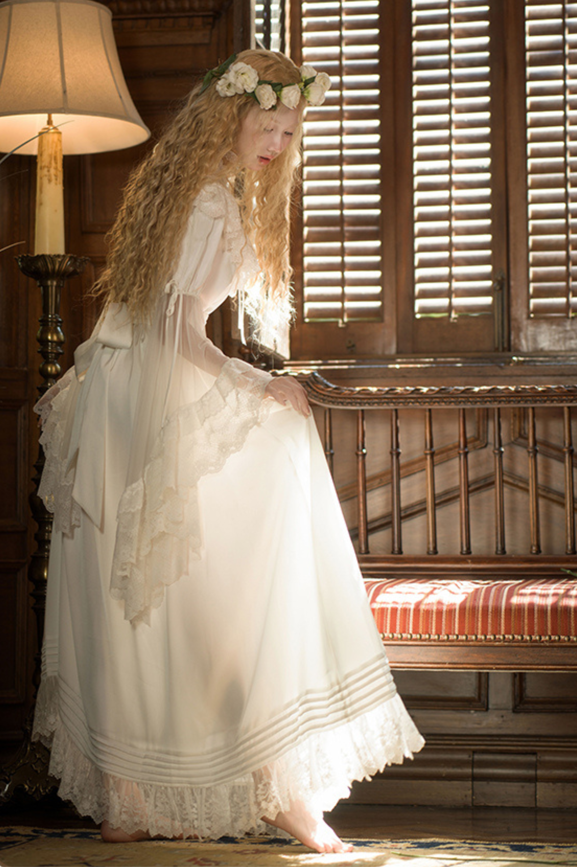 Blau-weißes Old School Lolita Fashion Kleid mit Schleife und Details, JSK-Set
