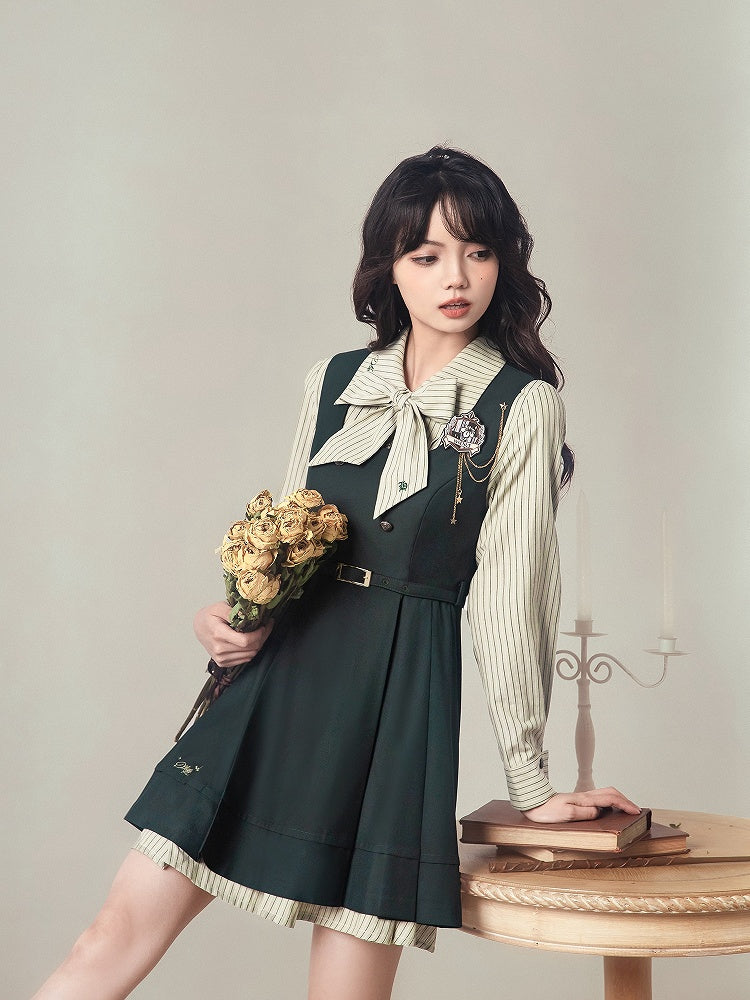 Blau-weißes Old School Lolita Fashion Kleid mit Schleife und Details, JSK-Set