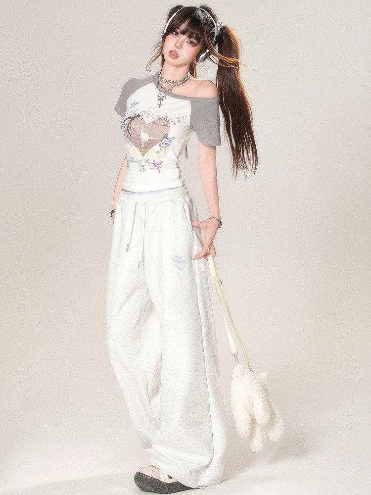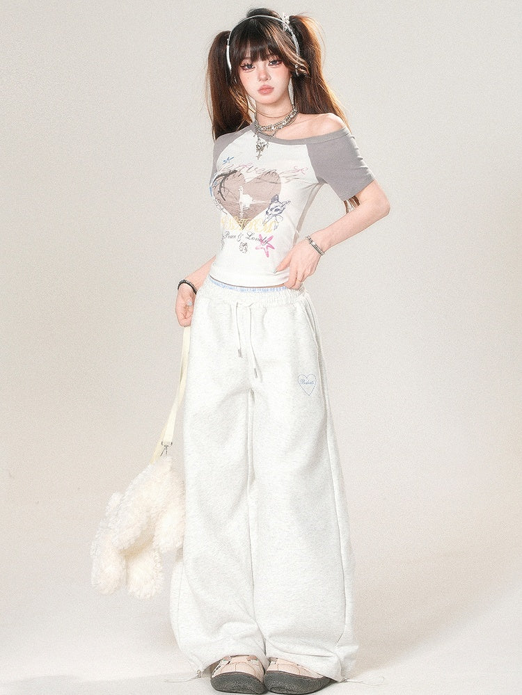 Stickerei Hell Weites Bein Grau Und Schnitt Buchstabenhose Trim Herz Spitze