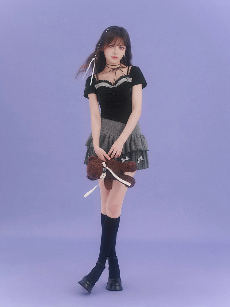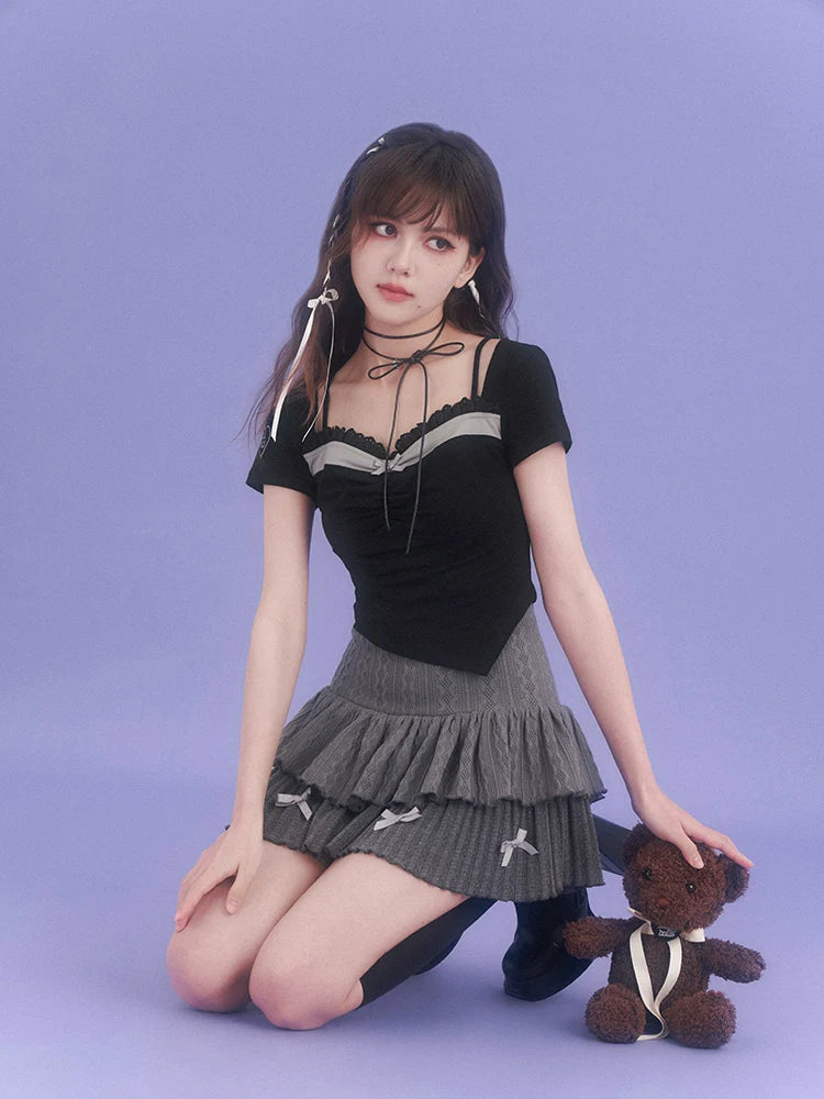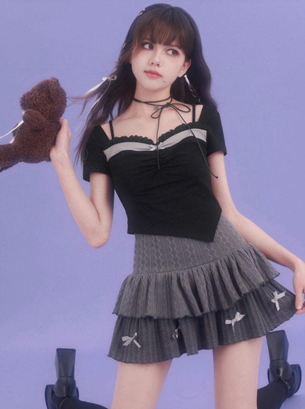 Schwarz-weißes Old School Lolita Fashion Kleid Bowknot Lolita JSK Set