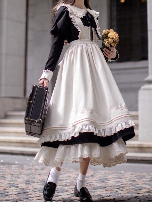 Schwarz-weißes Old School Lolita Fashion Kleid Bowknot Lolita JSK Set