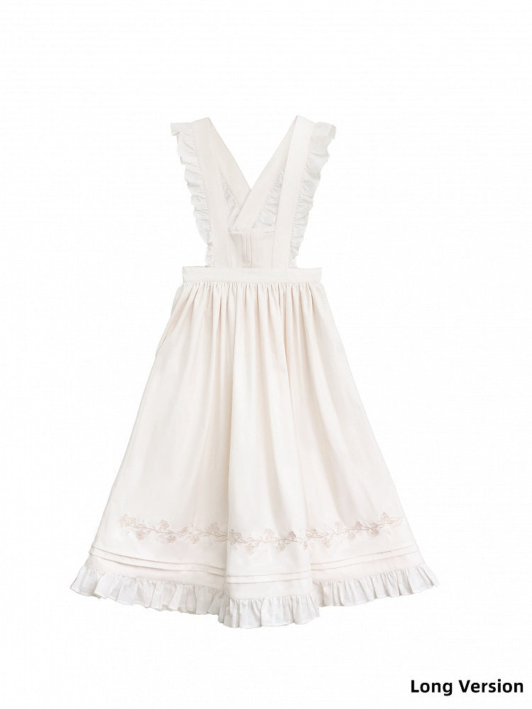 Weiße Schürze mit Blumenstickerei, kurze/lange Version