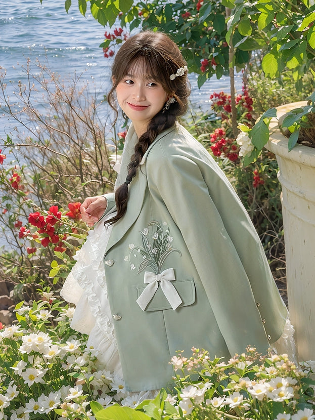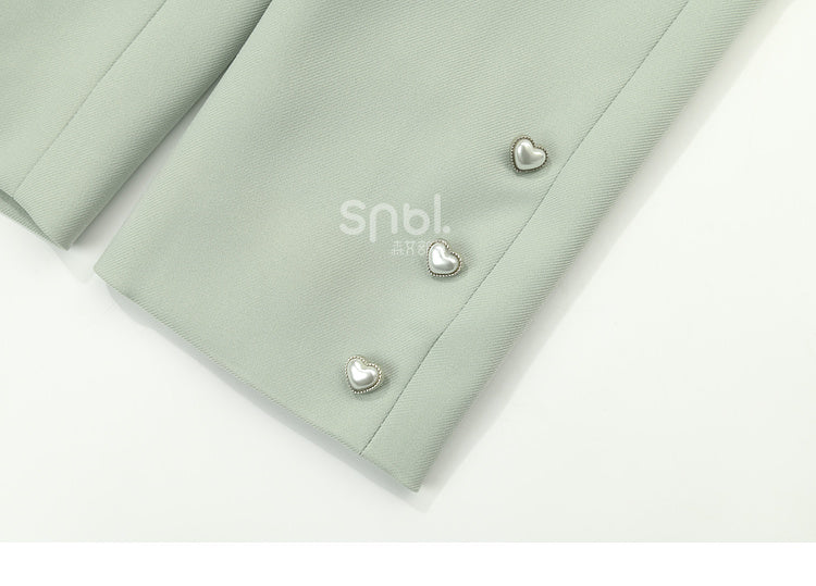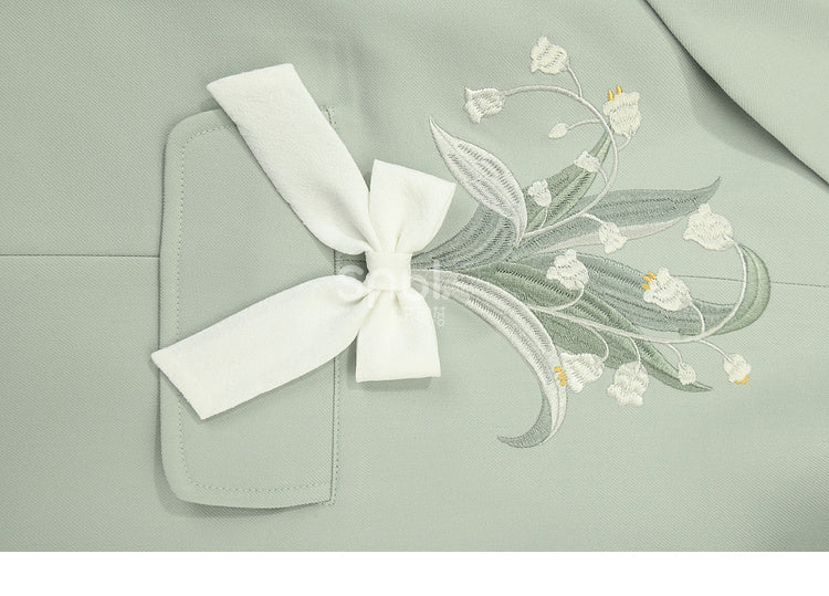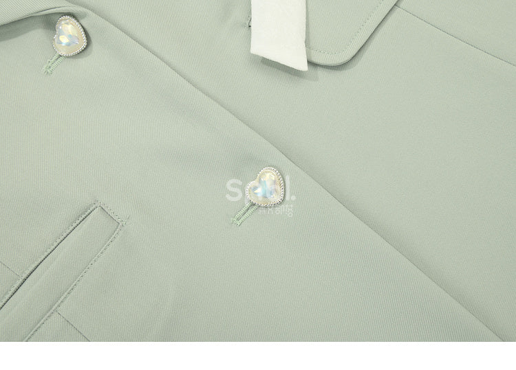 Dieser grüne Blazer mit Blumenstickerei besticht durch einzigartige herzförmige Knöpfe und zarte Blumenstickereien, die Ihrem Outfit einen Hauch von Niedlichkeit verleihen. Bleiben Sie stilvoll und charmant mit diesem Blazer, perfekt für jeden Anlass.