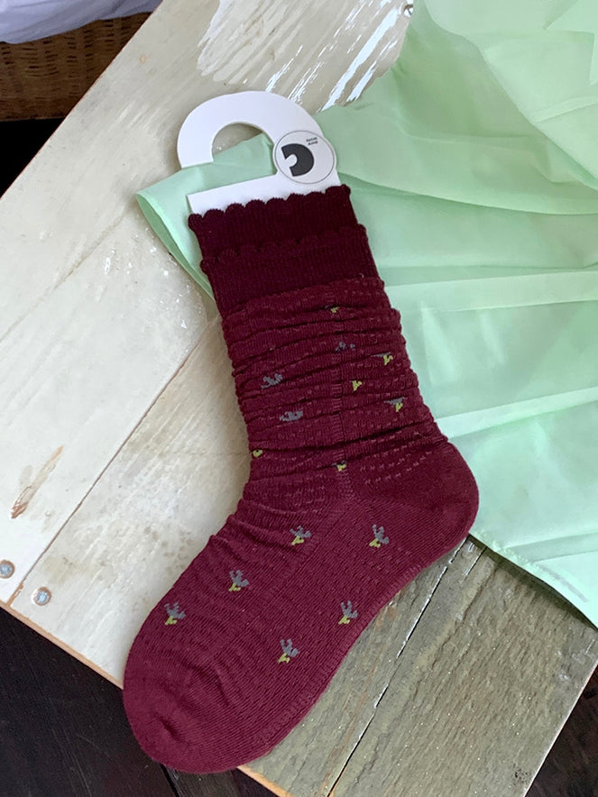 Blumenmuster Grau/Weiß/Weinrot Strümpfe Unter dem Knie Rot/Schwarz