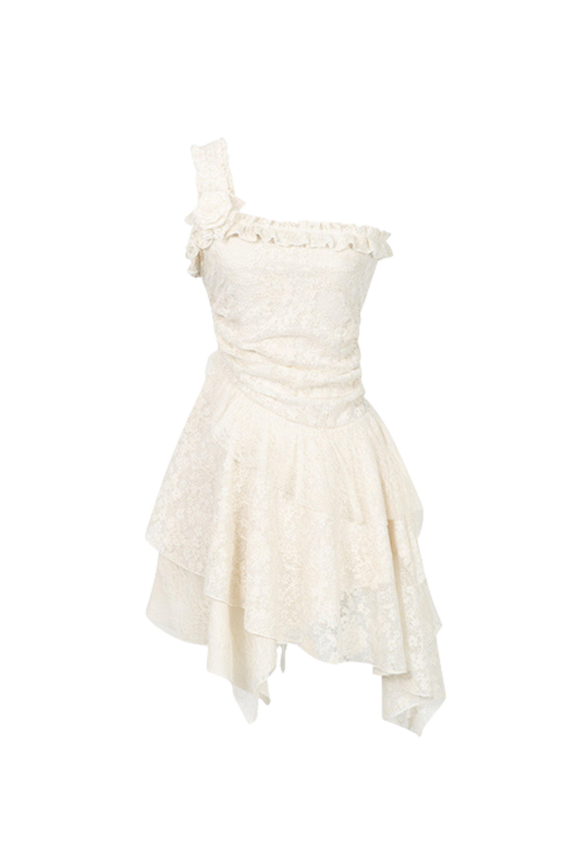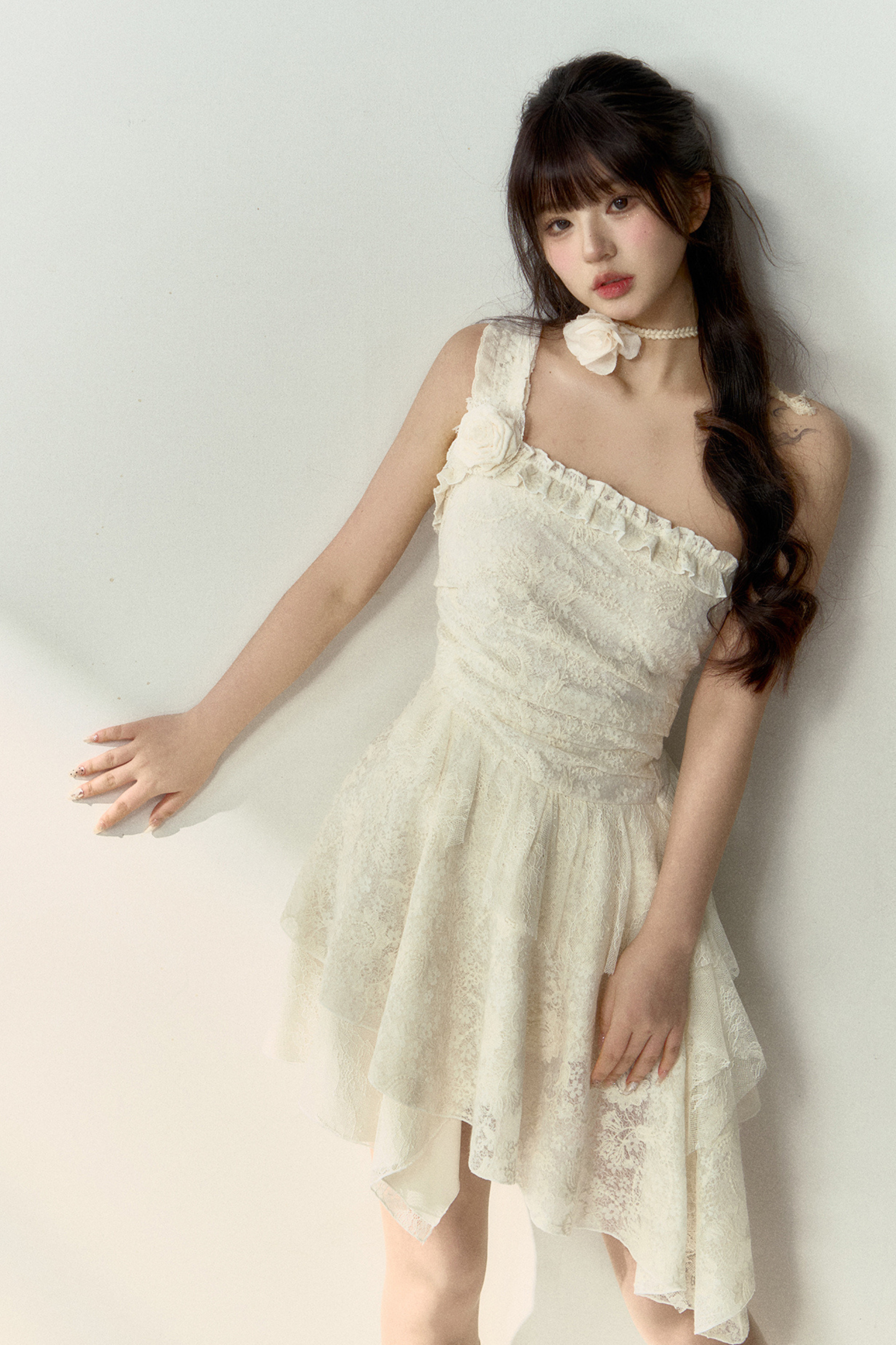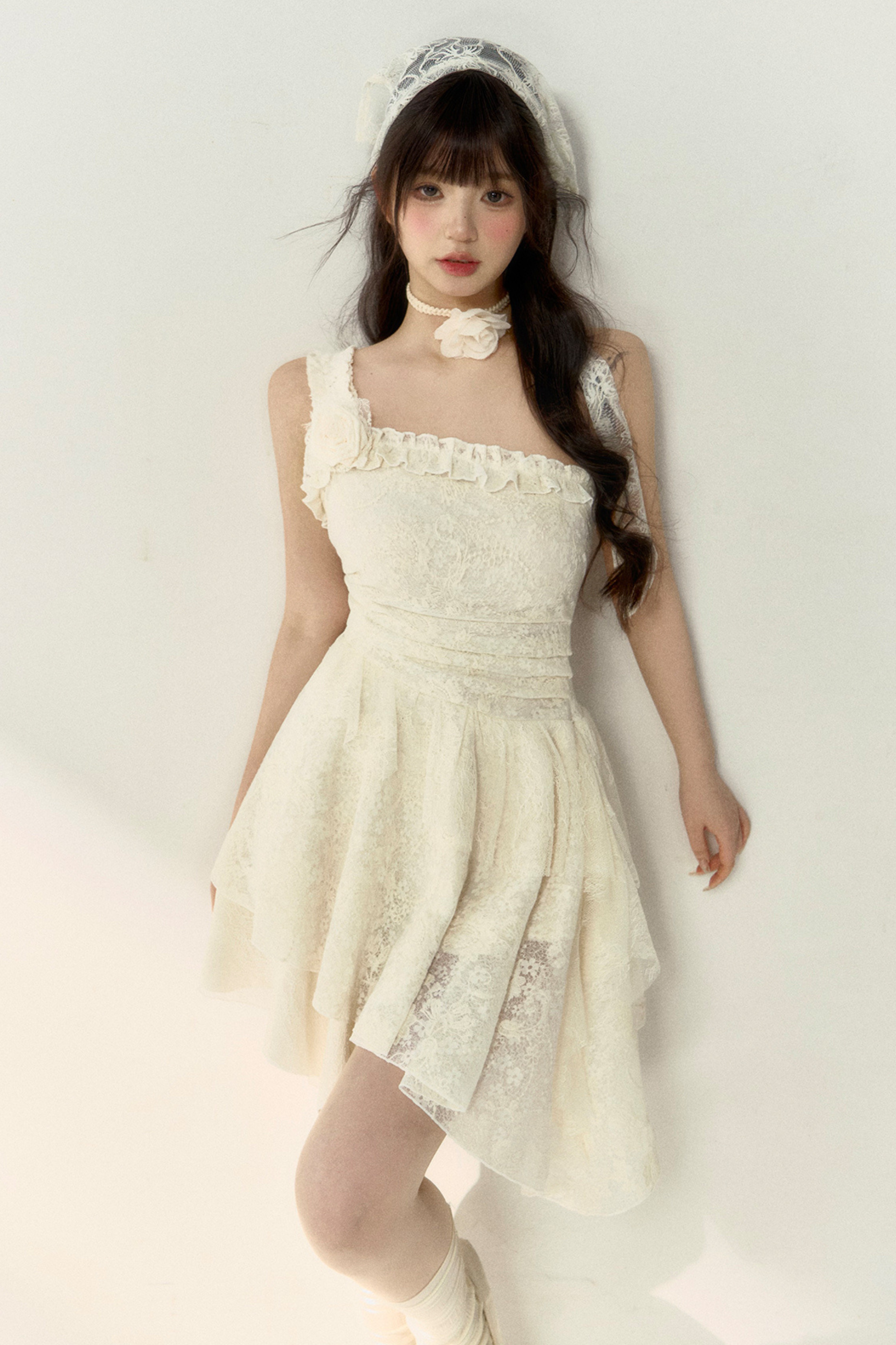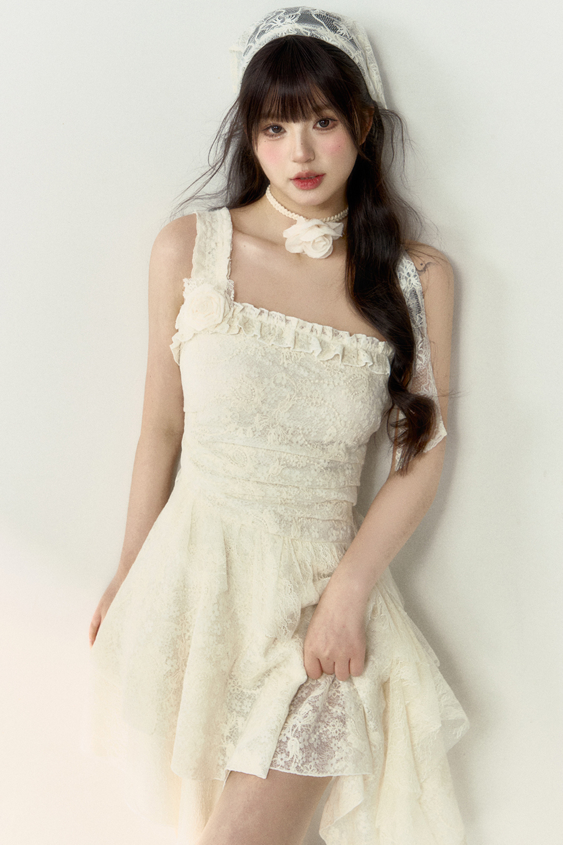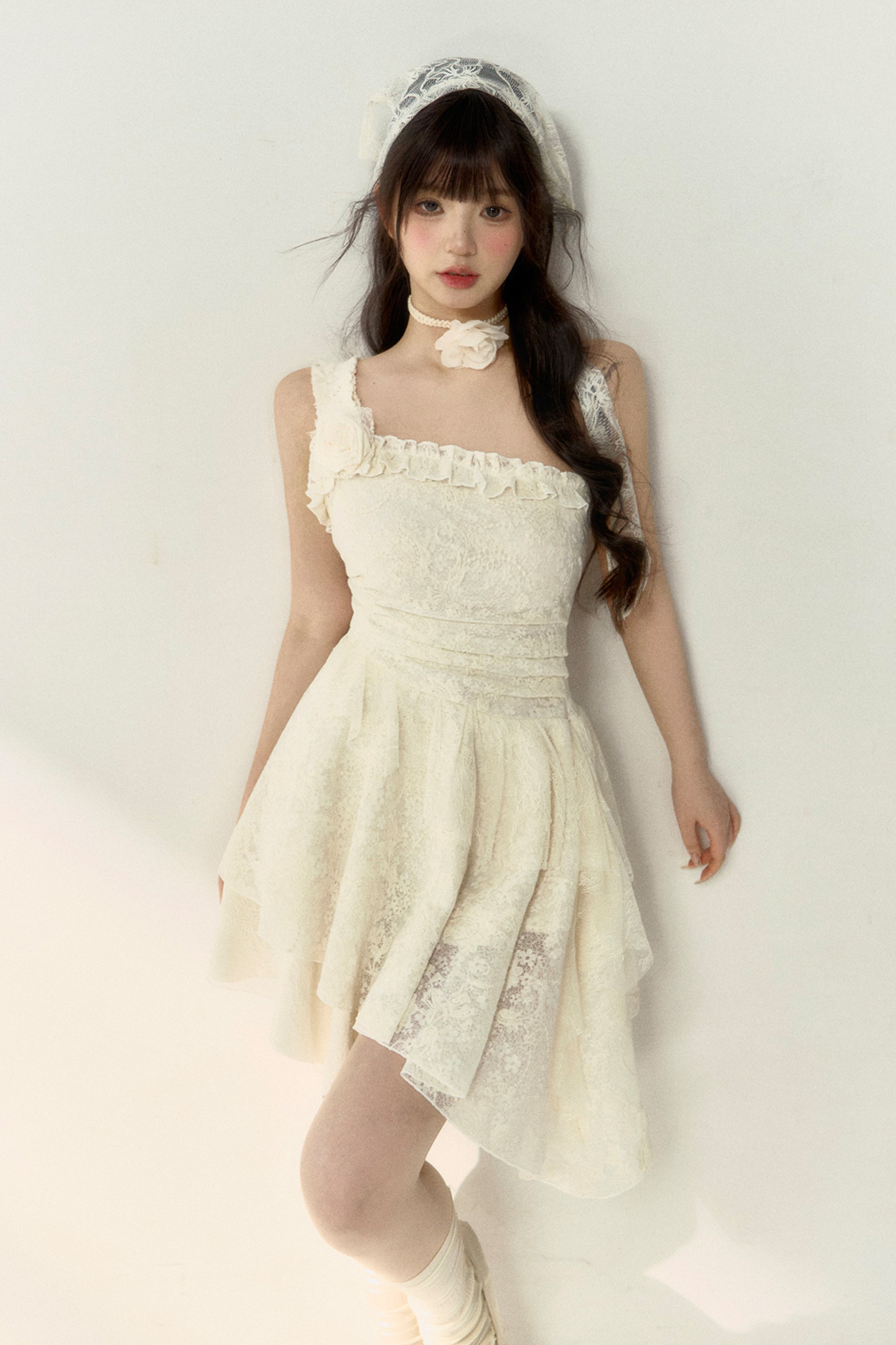 ❤Ärmelloses asymmetrisches Kleid mit Spitzenblumen❤