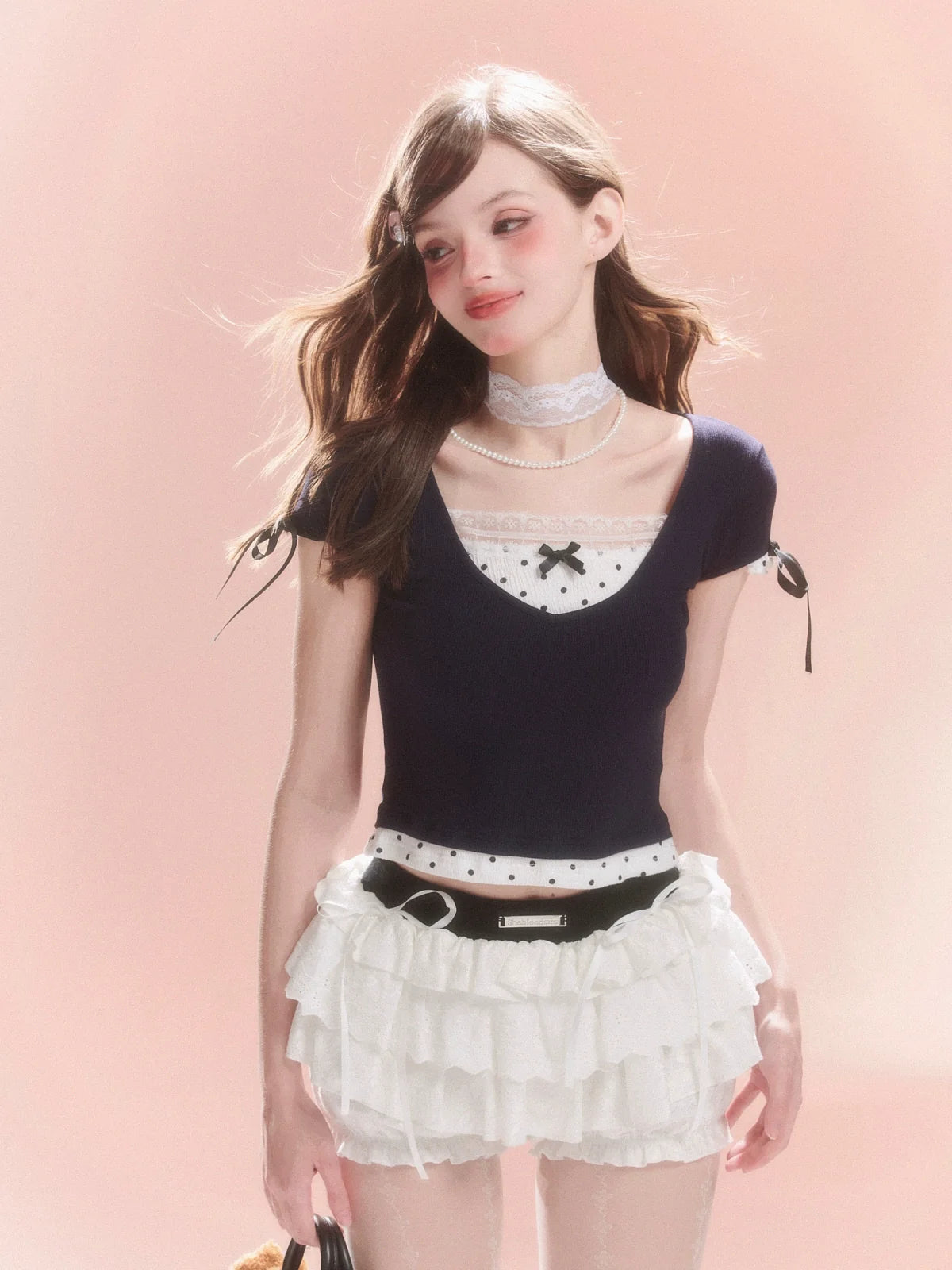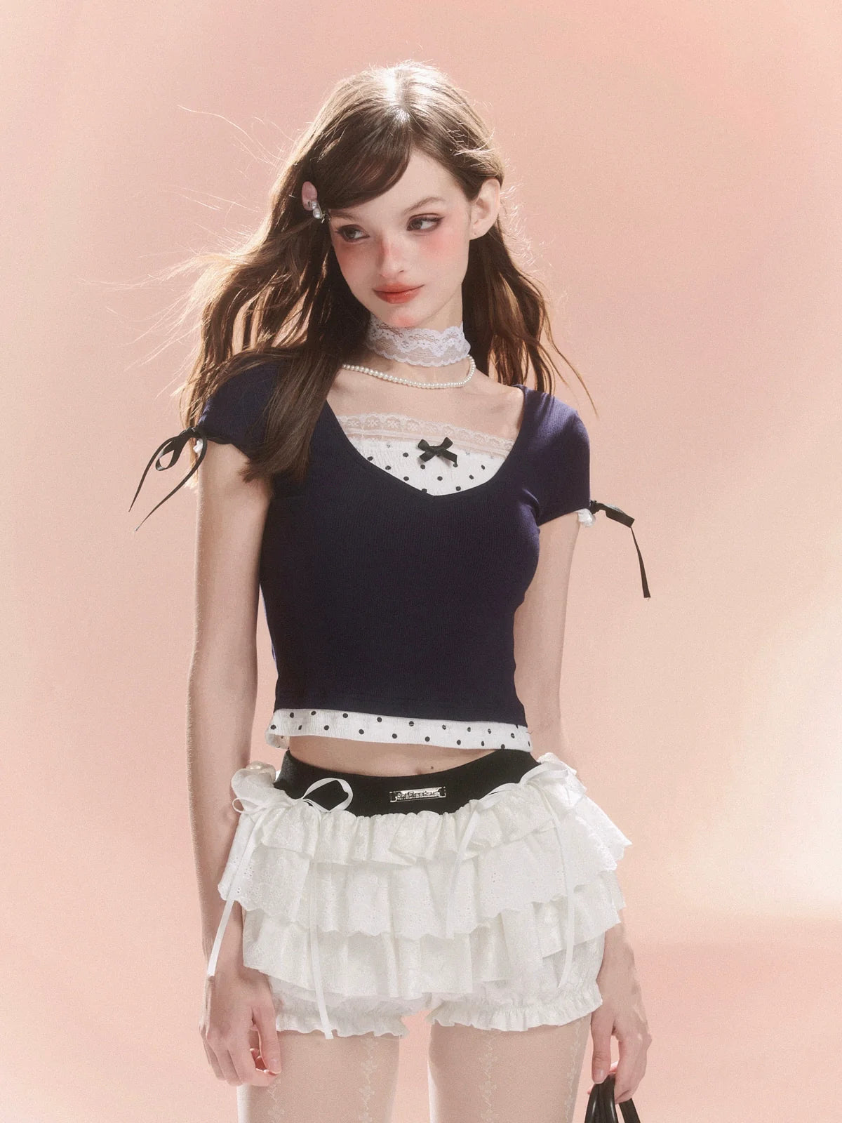 Dieses French Bow Tops Short Dot ist mit seinem charmanten Punktmuster und den verspielten Schleifenakzenten ebenso süß wie stylisch. Hergestellt aus hochwertigem Material verleiht es jedem Outfit einen Hauch von Eleganz. Perfekt für Freizeit und Abendgarderobe – ein echter Hingucker.