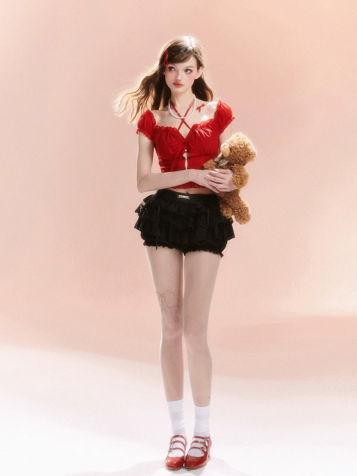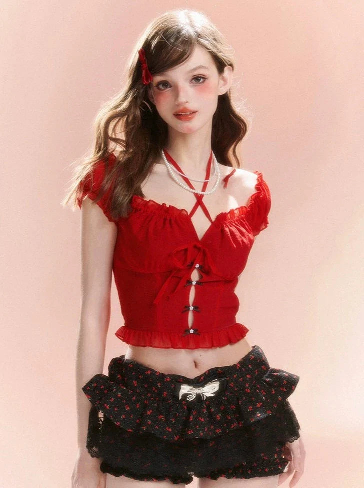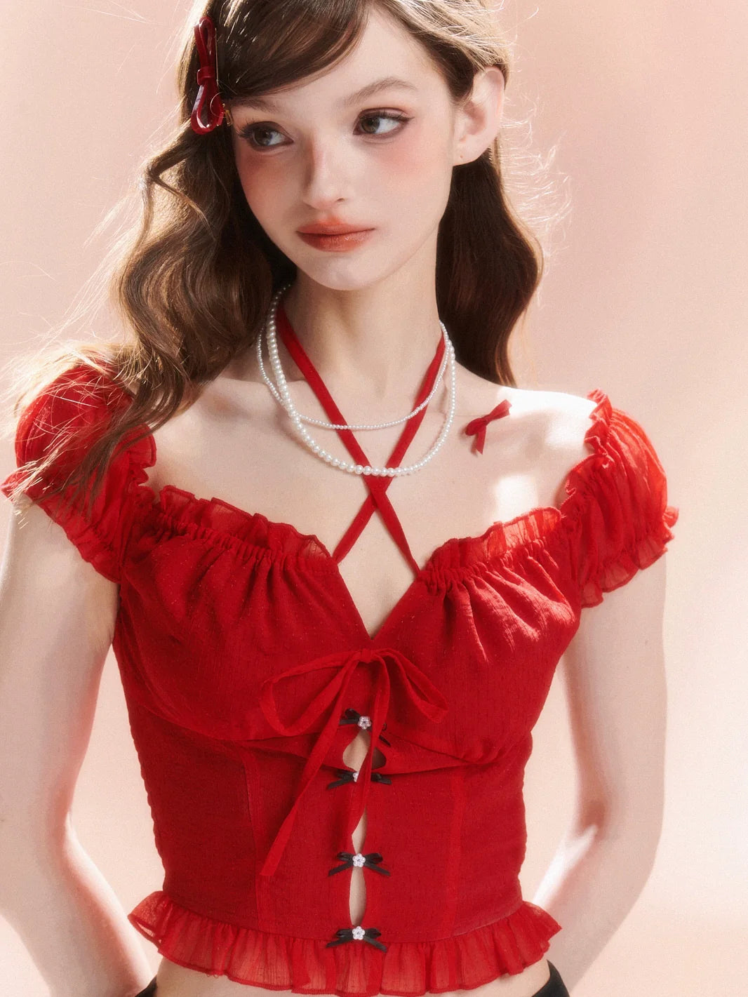 Dieses French Sweet Top zum Schnüren verleiht jedem Outfit einen Hauch von Niedlichkeit. Mit seinem zarten Schnürdesign verleiht es Ihrem Look nicht nur einen einzigartigen Stil, sondern bietet auch einen bequemen und sicheren Sitz. Werten Sie Ihre Garderobe mit diesem schönen Top auf.