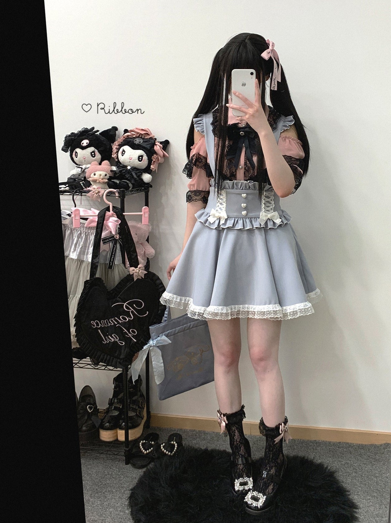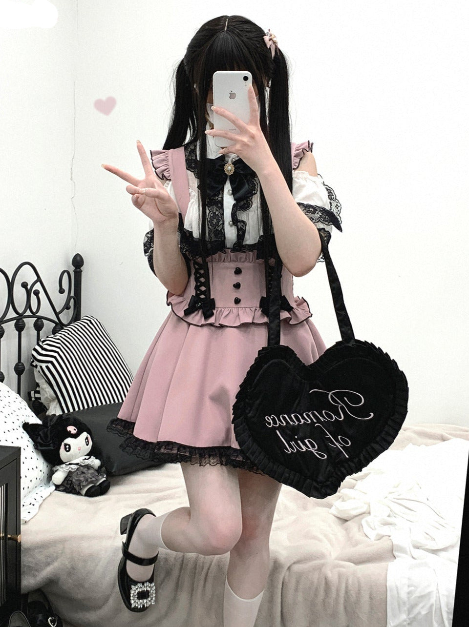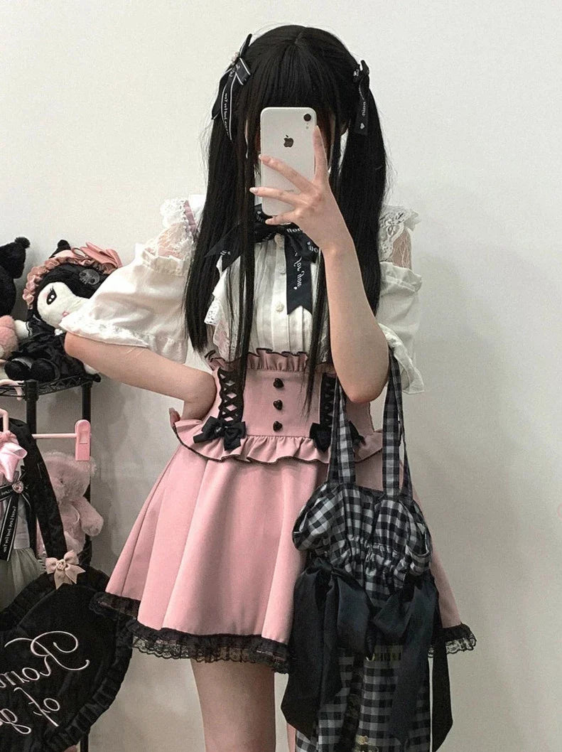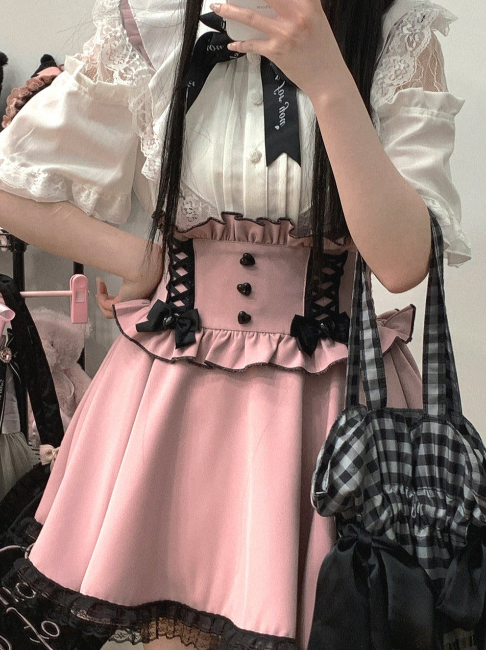 Rosa und weißes Old School Lolita Fashion Kleid Bowknot Detais Lolita JSK Set