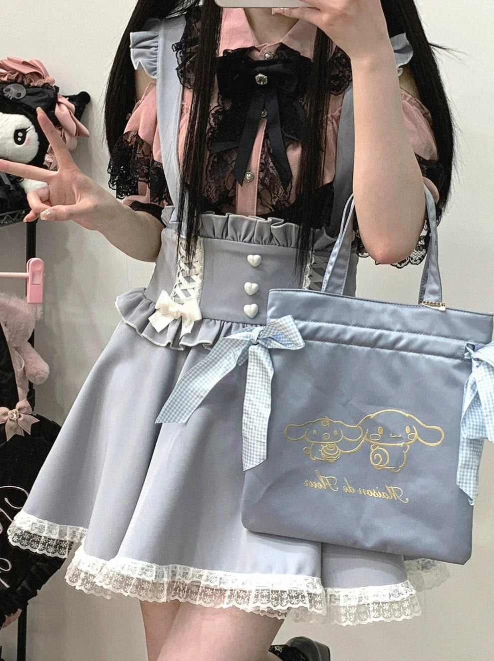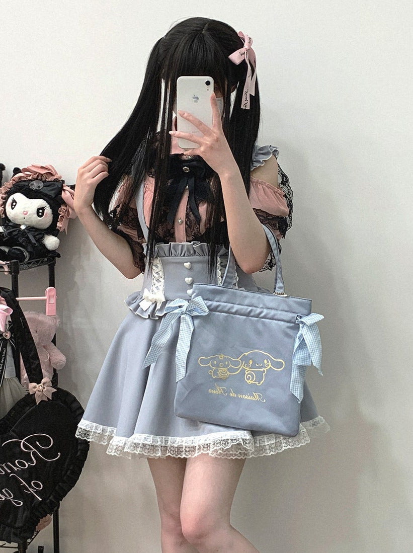 Blau-weißes Old School Lolita Fashion Kleid mit Schleife und Details, JSK-Set