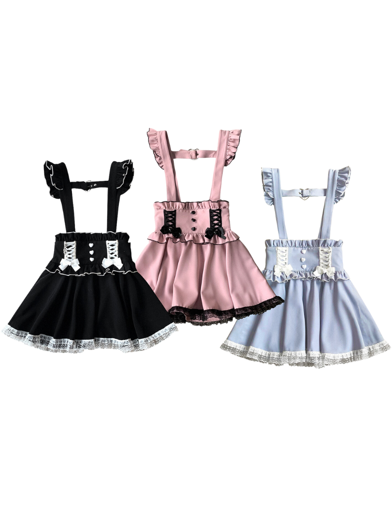 Spitzenrock mit Rüschen-Schulterriemen und Love Back