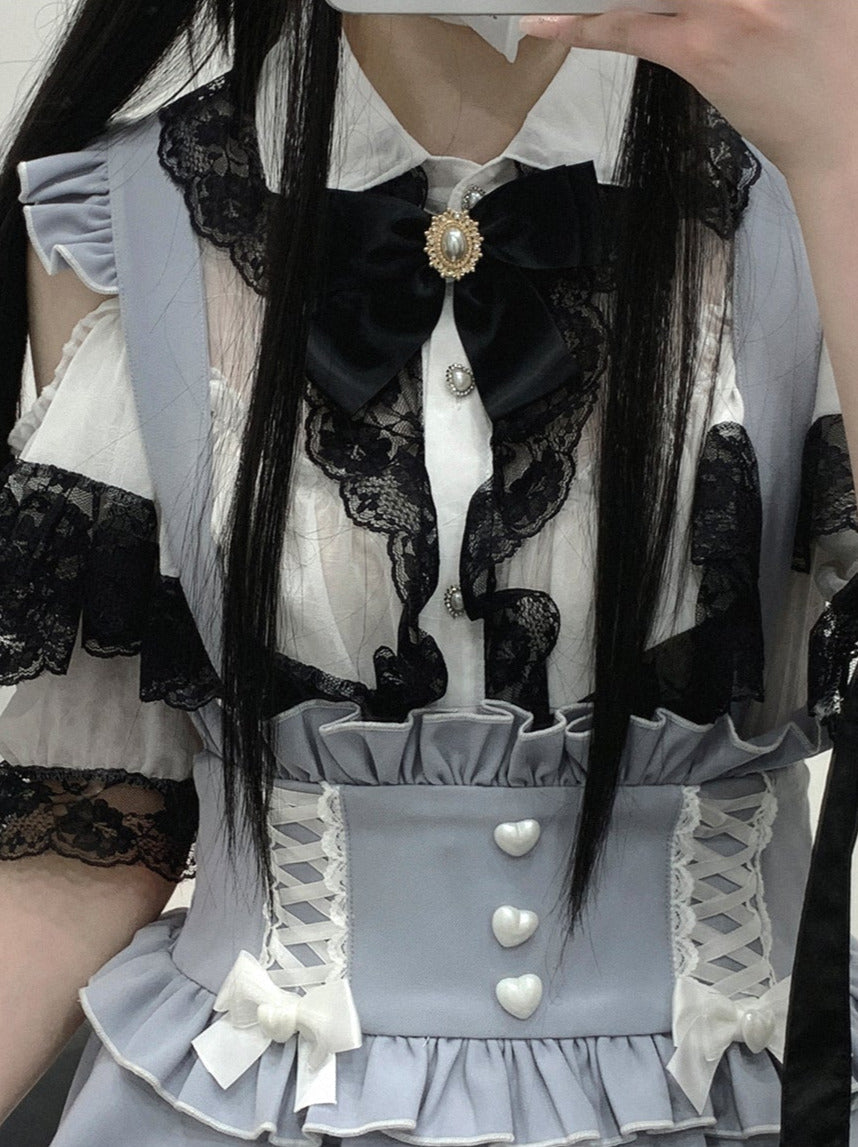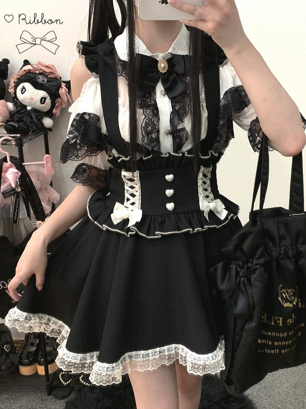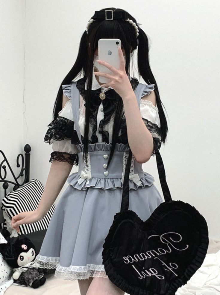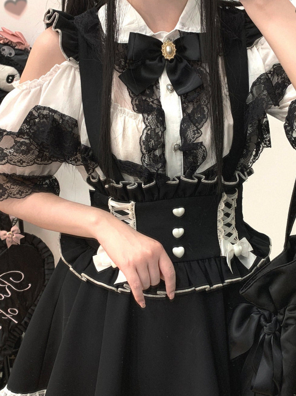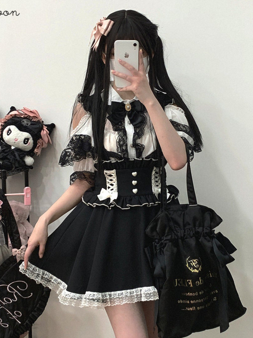 Schwarz-weißes Old School Lolita Fashion Kleid Bowknot Lolita JSK Set