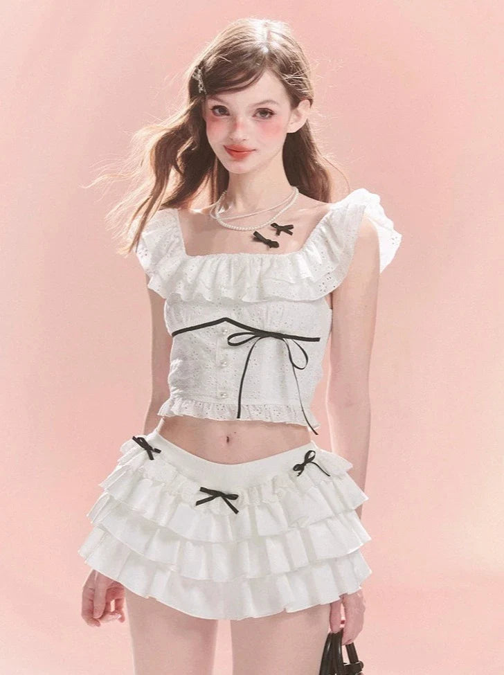 Verleihen Sie Ihrer Garderobe mit unserem Rüschentop mit Spitzenausschnitt einen Hauch von Niedlichkeit. Die zarte Spitzenverzierung am Hals und die quadratische Silhouette machen dieses Top sowohl stilvoll als auch bezaubernd. Perfekt für jeden Anlass!