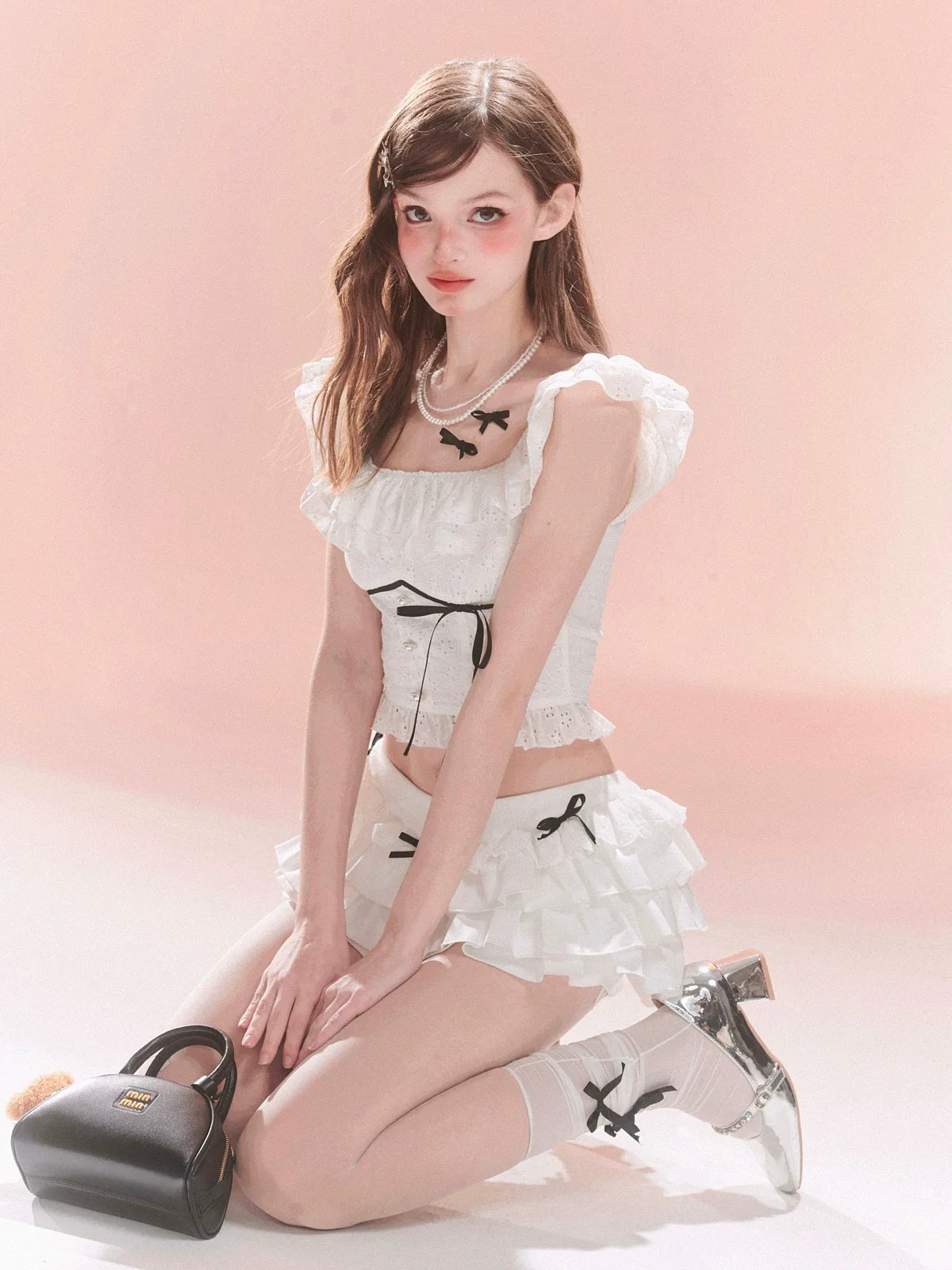 Schwarz-weißes Old School Lolita Fashion Kleid Bowknot Lolita JSK Set