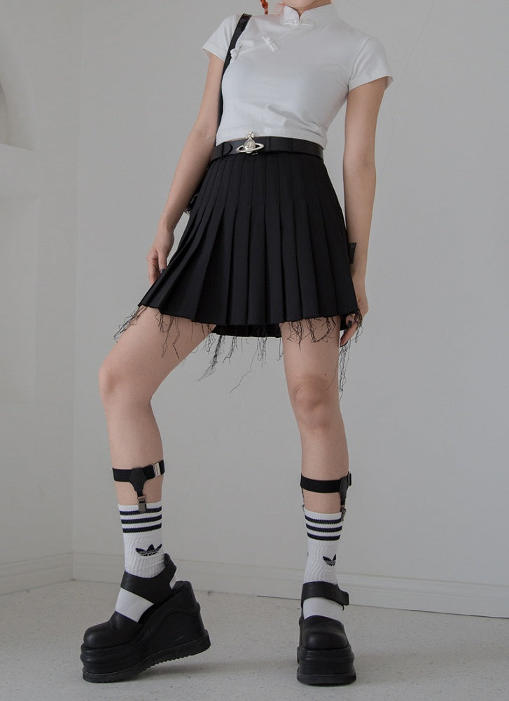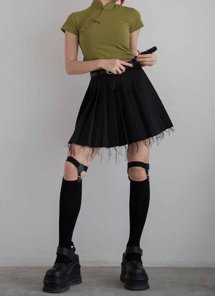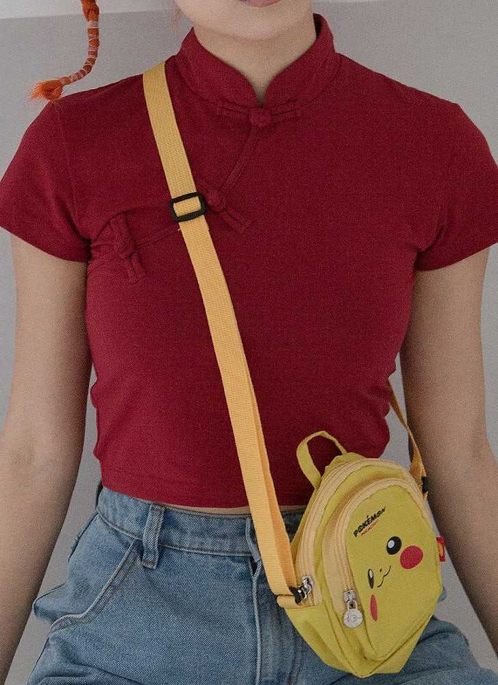 Frosch T-Shirt Crop Cheongsam Verfügbare Farben Knöpfe 5 Mandarin-Stil in mit Kragen -