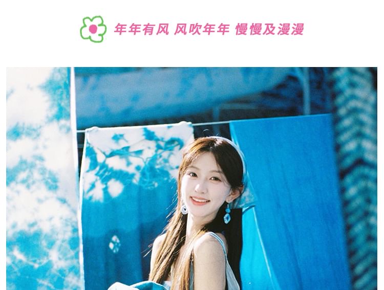 Blau-weißes Old School Lolita Fashion Kleid mit Schleife und Details, JSK-Set