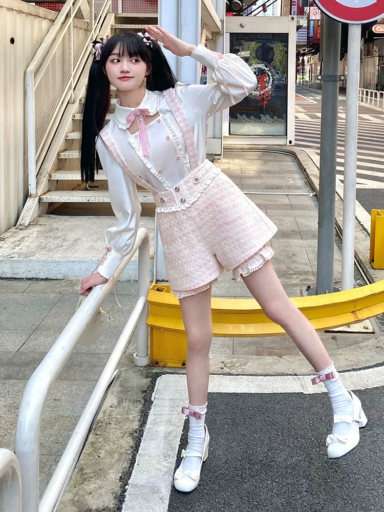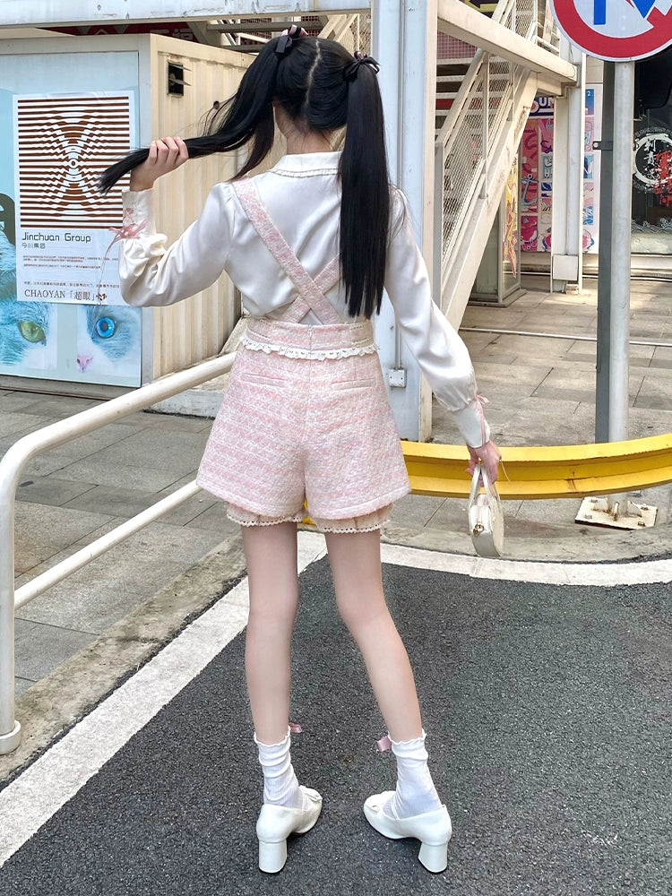 Mädchen Bluse Hose Rosa Hosenträger Pure Tweed