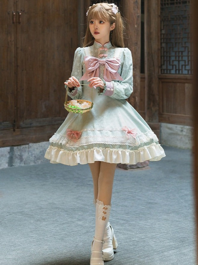 Machen Sie sich bereit, in unserem Girly Dress Bow Chinese Sweet alle Blicke auf sich zu ziehen! Dieses bezaubernde Kleid mit der bezaubernden Schleife ist perfekt für jeden mädchenhaften und süßen Look. Fühlen Sie sich selbstbewusst und stilvoll in diesem Must-have.