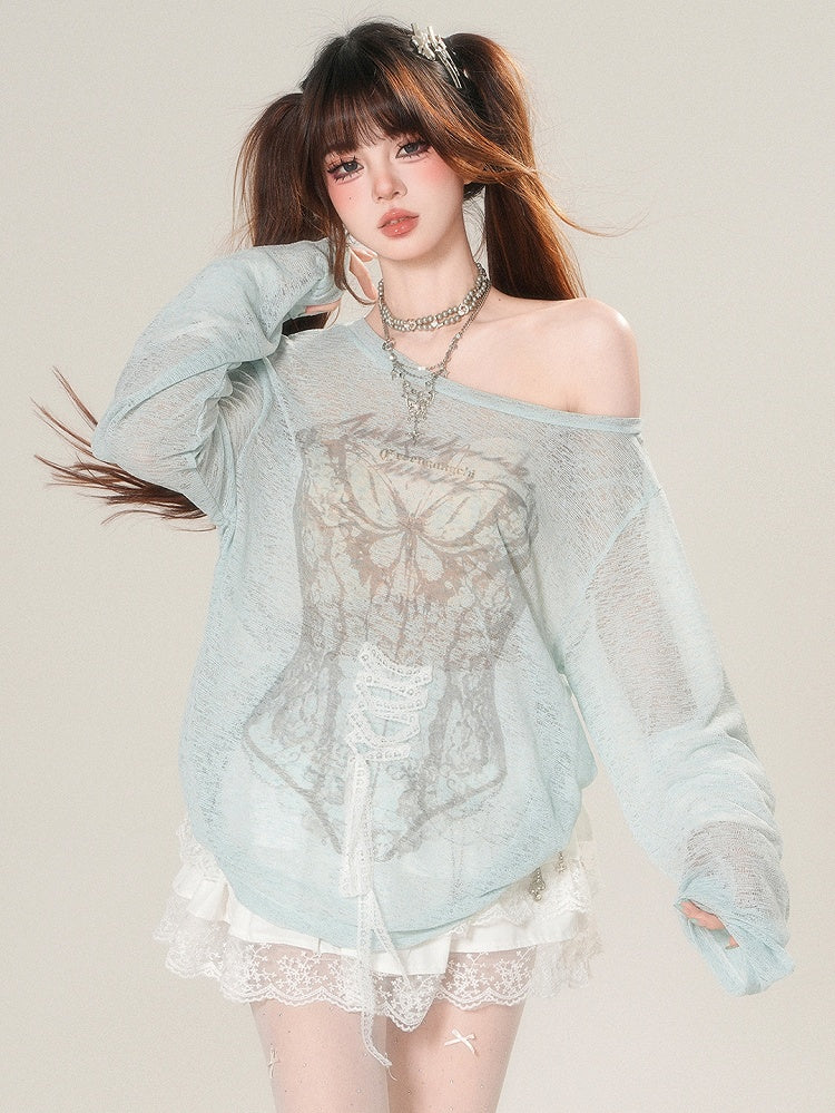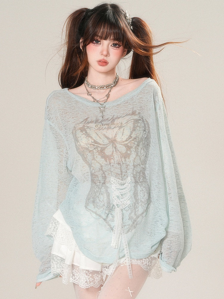 Grün/Beige – Glamorous – Langärmliges Sonnenschutz-Top mit Schnürung