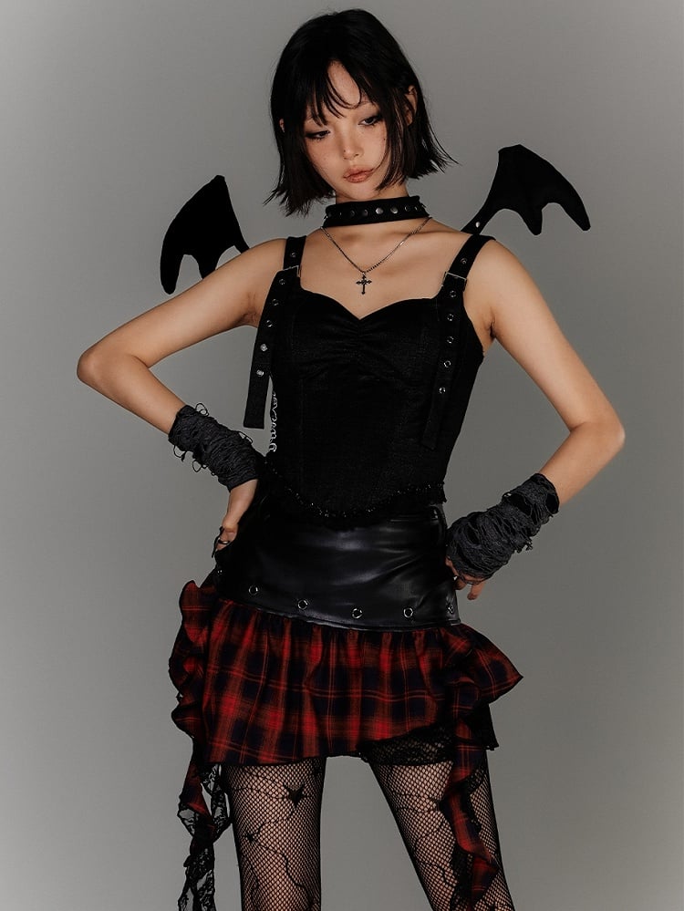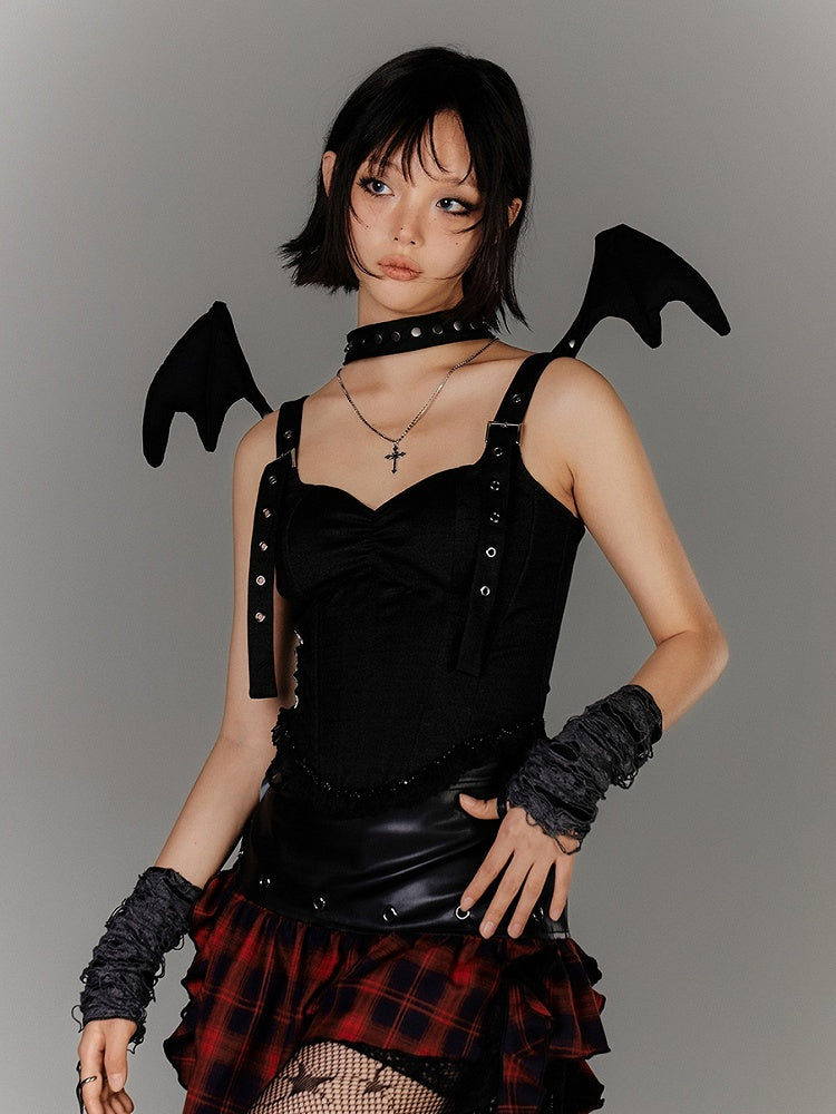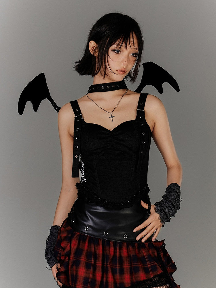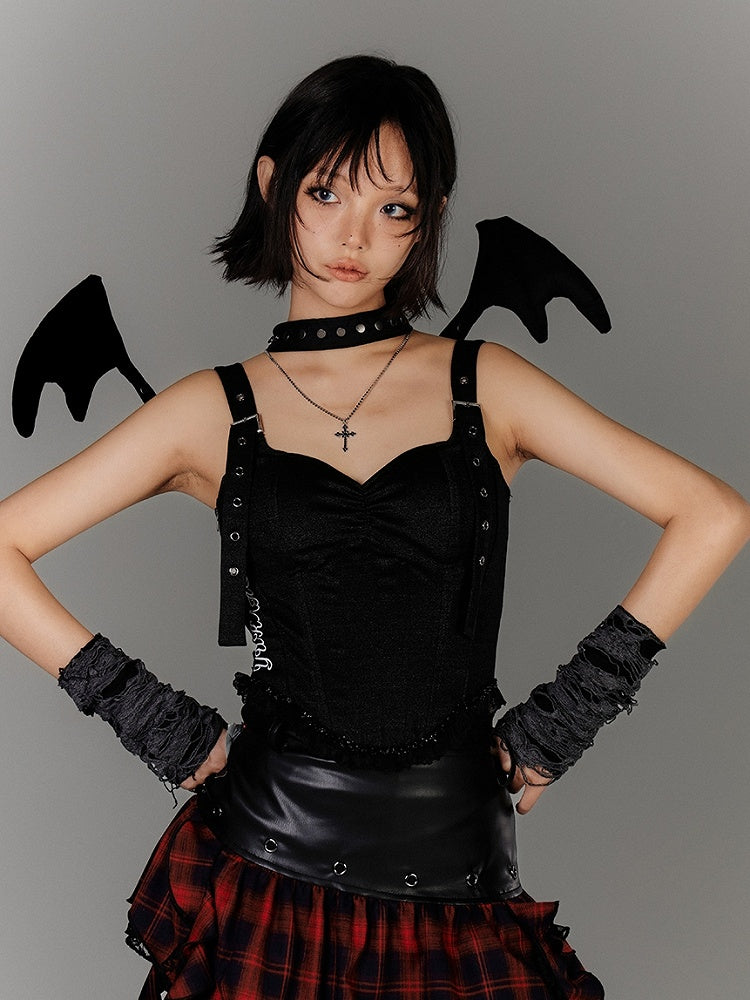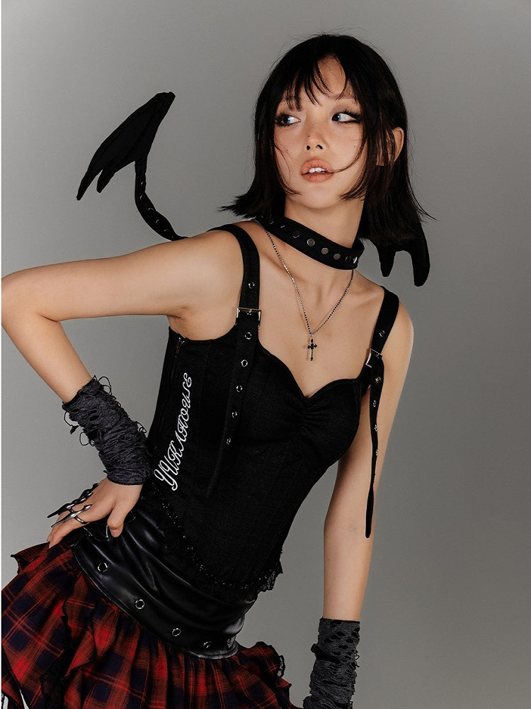 Glamorous Ärmelloses Korsett Top Träger Schwarz Herzförmiger Ausschnitt Schnalle Schulter