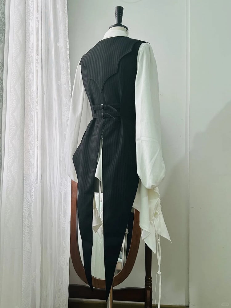Schwarze Ouji Lolita-Weste mit Fledermausflügeln, gebogenem Saum und Kragen, gotische Schwalbenschwanzweste