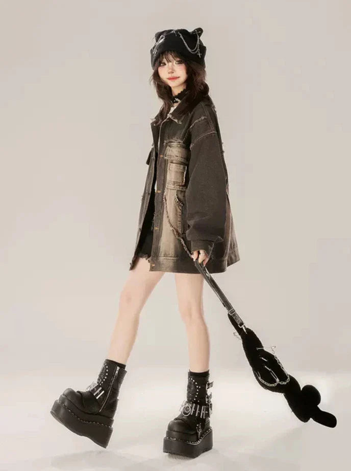 Machen Sie sich bereit, mit dieser süßen schwarzen Jeansjacke von Gradient Street alle Blicke auf sich zu ziehen. Das Retro-Design und der hochwertige Stoff sorgen dafür, dass Sie den ganzen Tag über stilvoll aussehen und sich wohlfühlen. Diese Jacke passt perfekt zu jedem lässigen oder ausgefallenen Outfit und ist ein Must-have für jeden modebewussten Menschen.