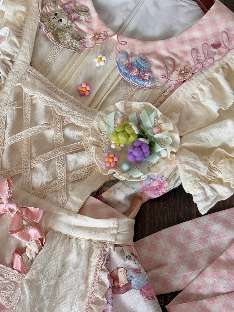 Rosa und weißes Old School Lolita Fashion Kleid Bowknot Detais Lolita JSK Set