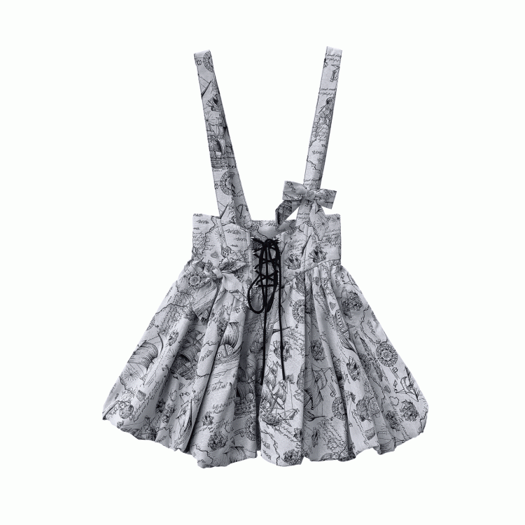 Grauer Jacquard-Overall-Ballerrock mit Schnürung an der Taille
