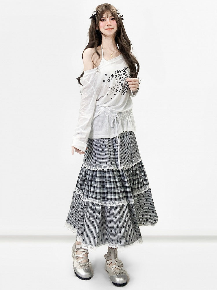 Graues Musterbesatz Polka-Dot Y2K und Rockspitze Bittersüßes Karo