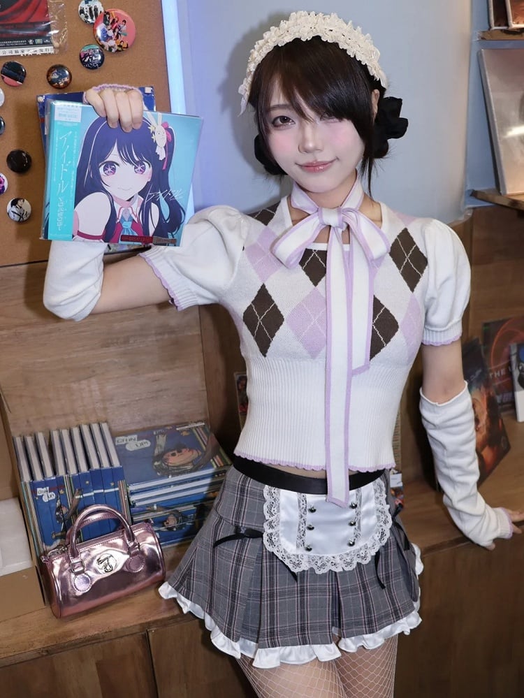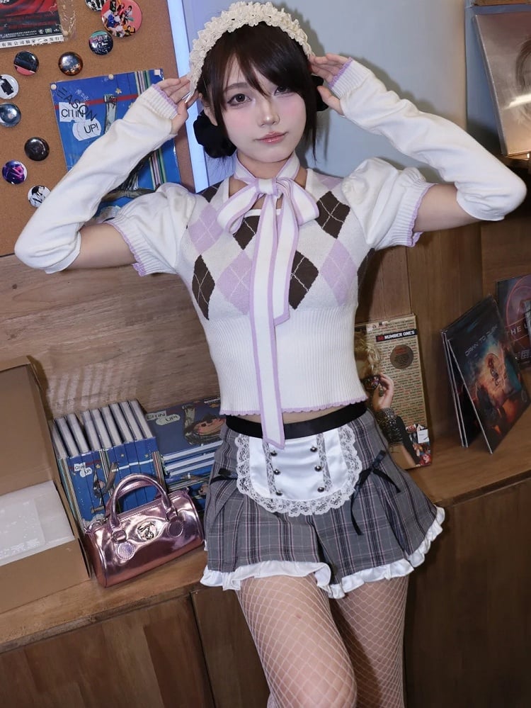 Dieser bezaubernde Minirock mit grauem Karomuster und Rüschenbesatz an der Schürze ist perfekt für jeden süßen Look.