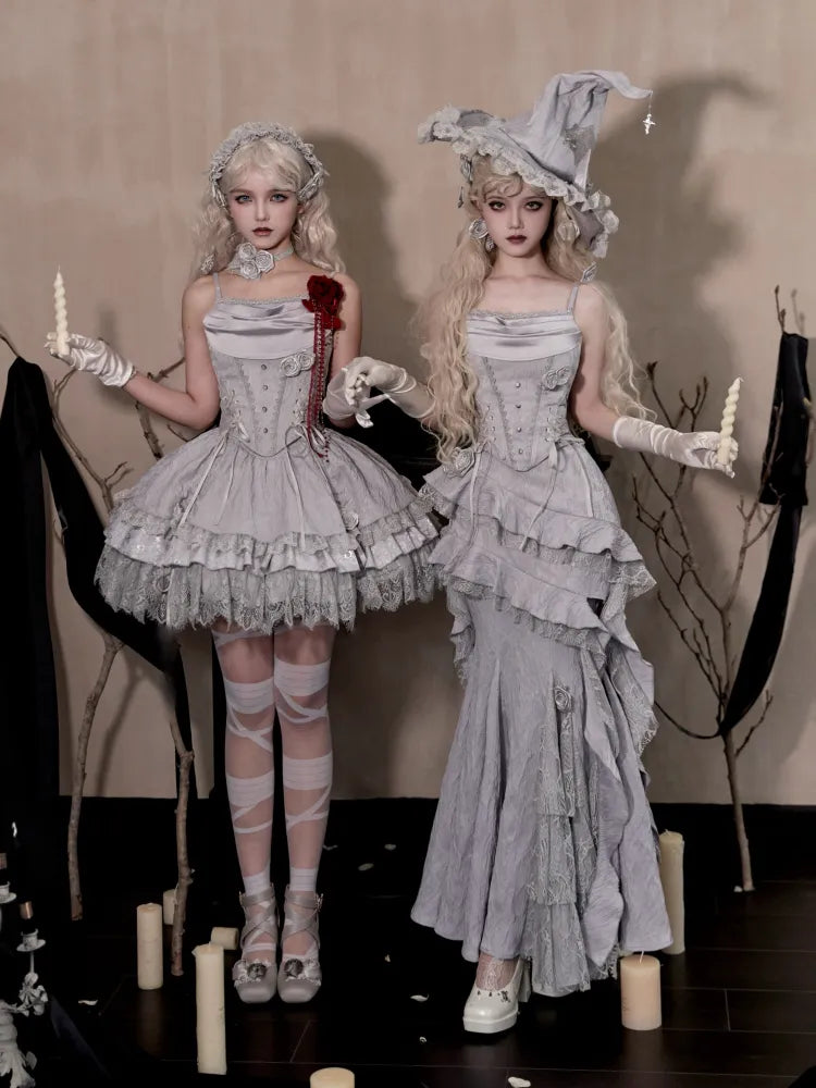 Schwarz-weißes Old School Lolita Fashion Kleid Bowknot Lolita JSK Set